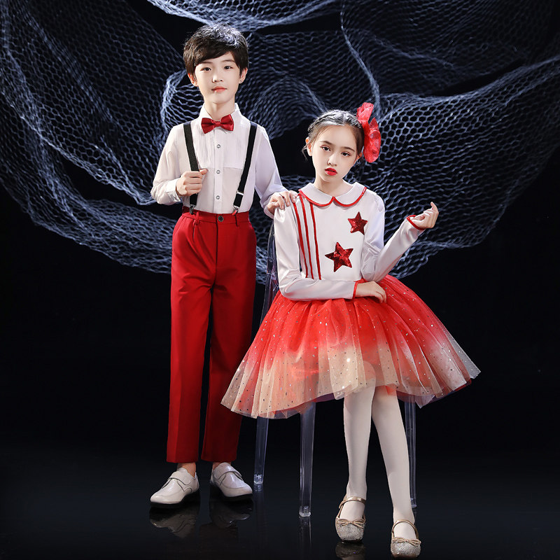 National Day children's chorus performance clothing boys and girls dress primary and secondary school students big chorus red song recitation performance clothing