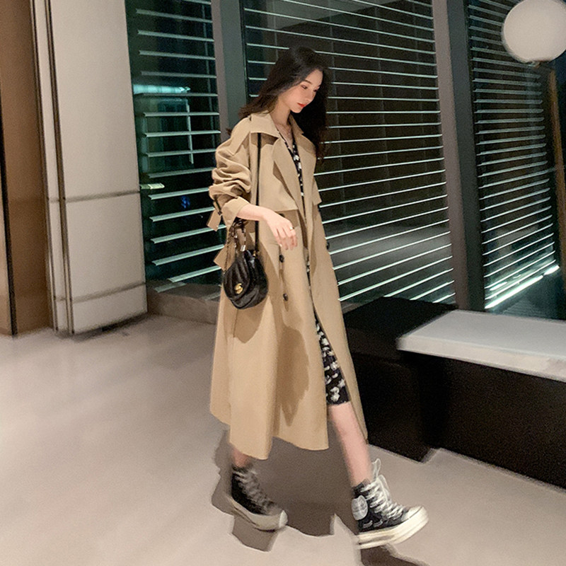 Card its Color Winsweaters 2022 New spring models Long version Inn Wind over kneecap high-end temperament jacket Spring and autumn clothes