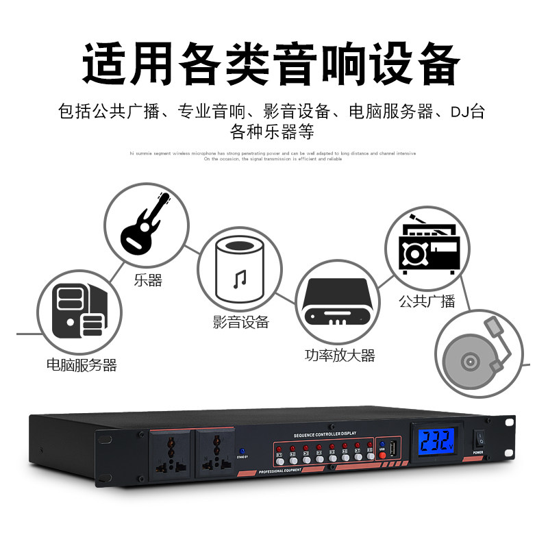 Power sequencer 8-way 10-way 9-way professional audio equipment sequence management controller Universal plug-in display