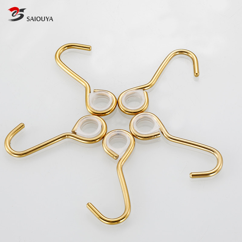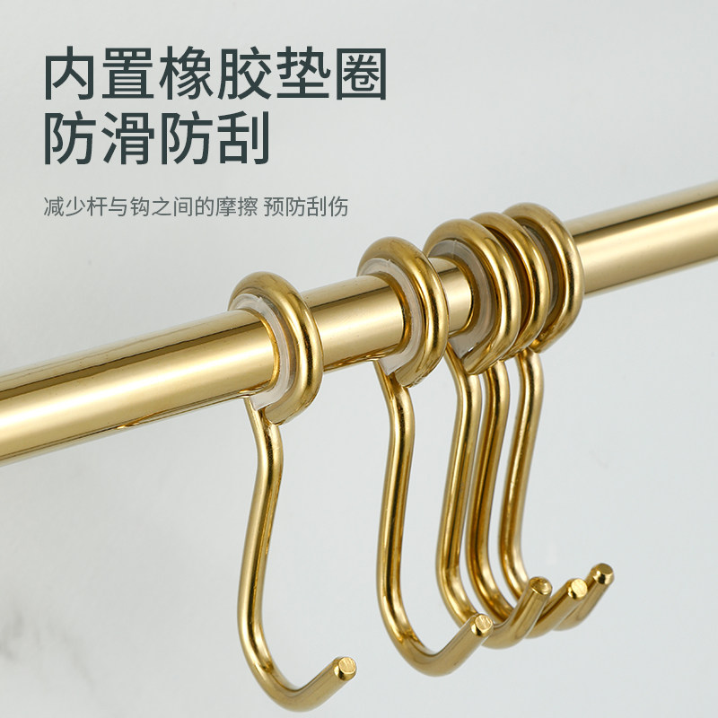 Stainless steel casing hook golden crossbar hook clothes hook punch-free kitchen storage wear rod movable hook silver single hook