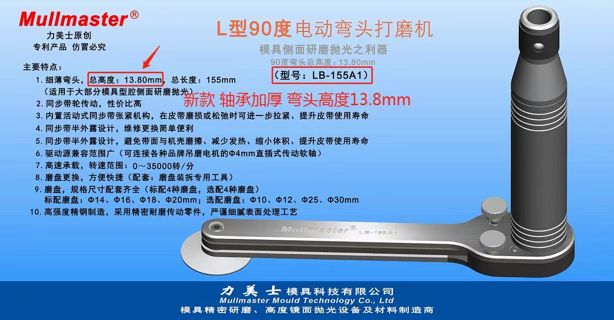Limes L-type 90-degree electric hoisting grinder elbow handle side deep groove charger mold polishing grinder