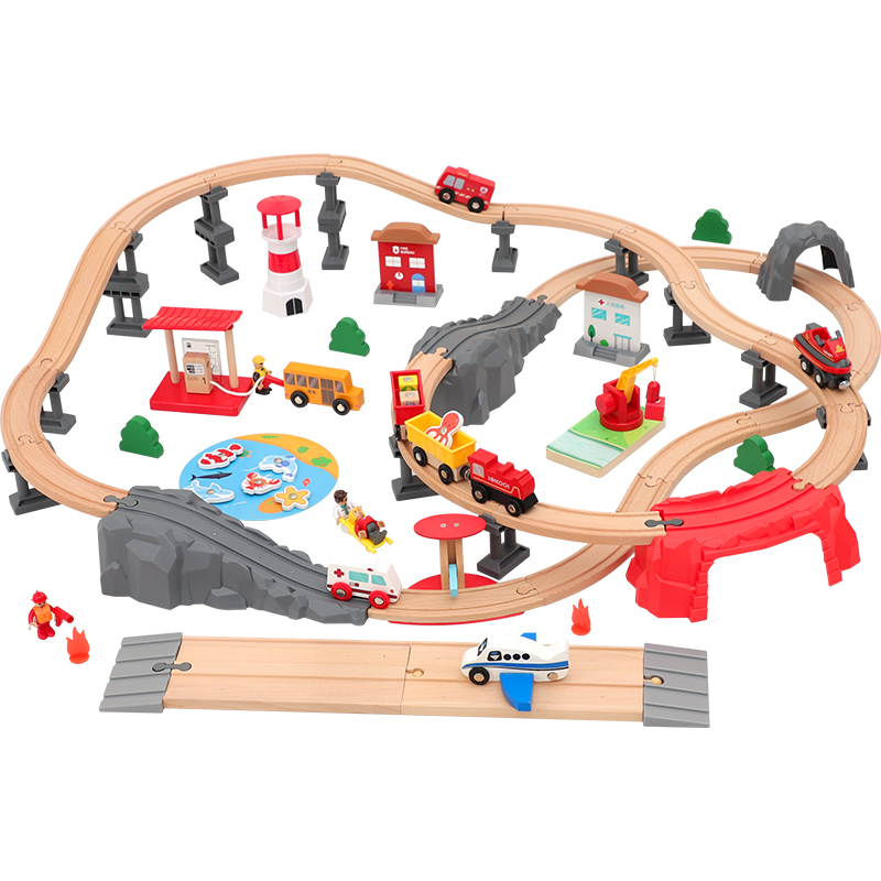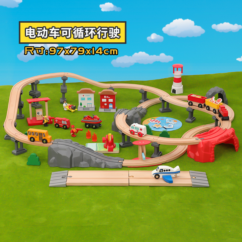 Boy double wooden assembled car track racing children Toys electric remote control Small trains Total mobilisation 3 years 4
