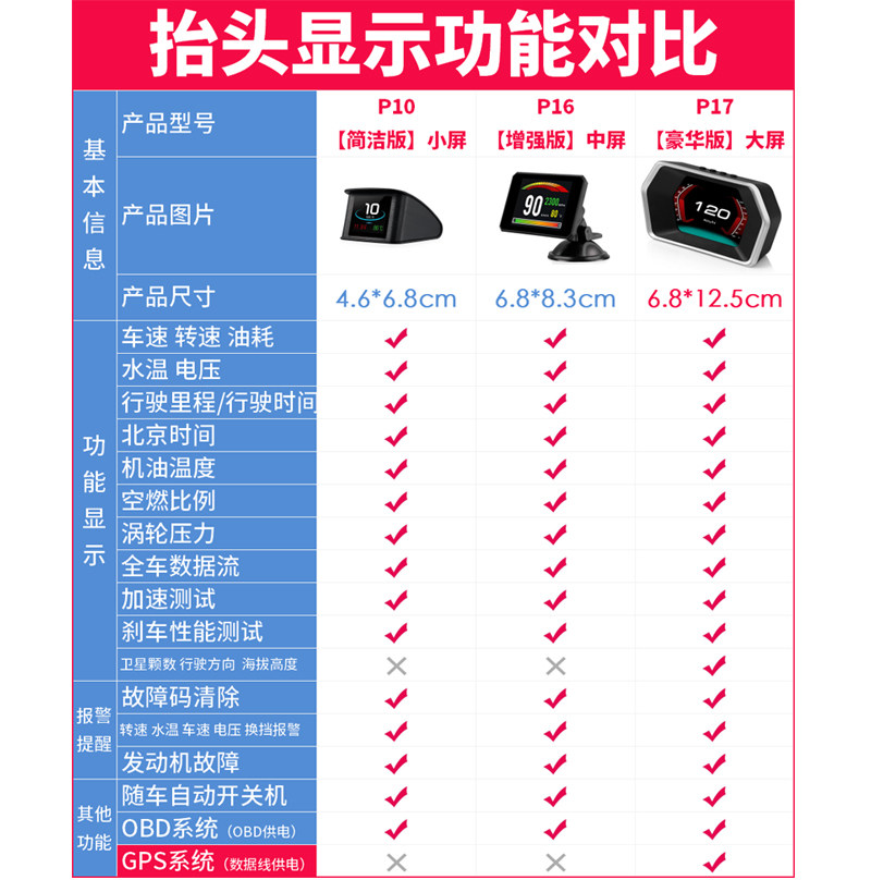 P10 (concise version) small screen P16 (enhanced version) in screen P17 (luxury version) big screen