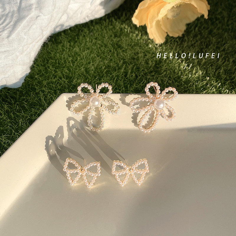 Korean sweet pearl flower earrings cute bow girl earrings niche design summer temperament earrings