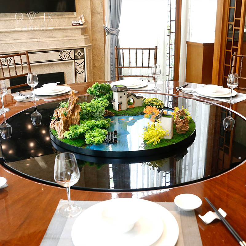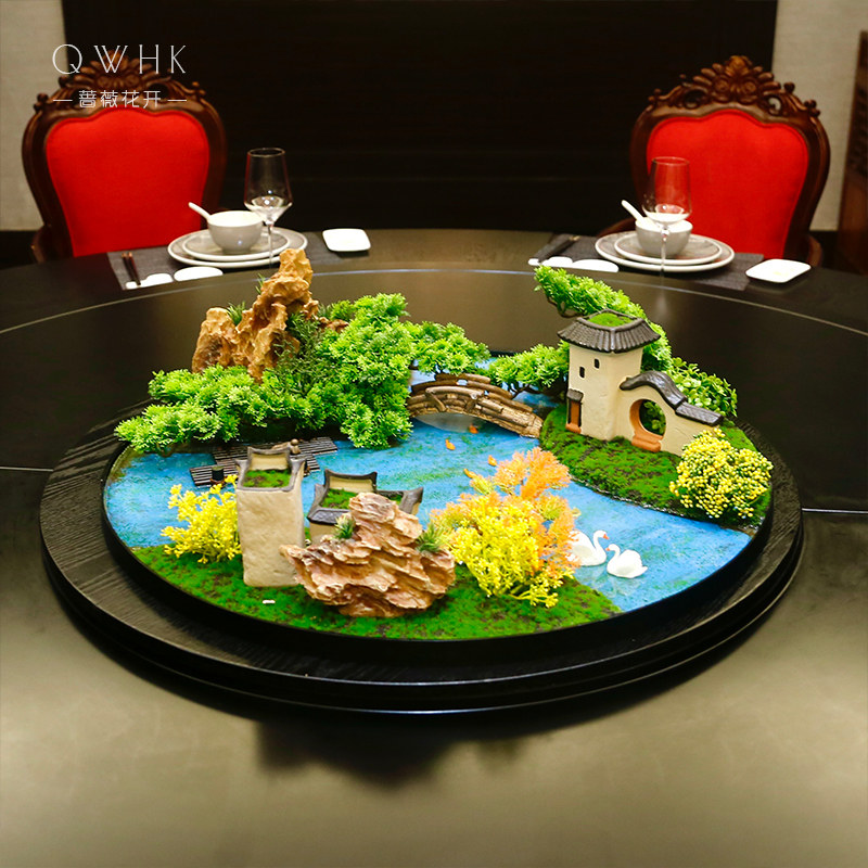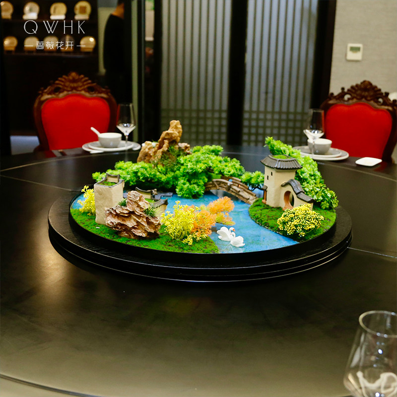High-end high-end new Chinese hotel round table turntable table flower arrangement flower decoration fake flower large micro landscape landscaping decoration