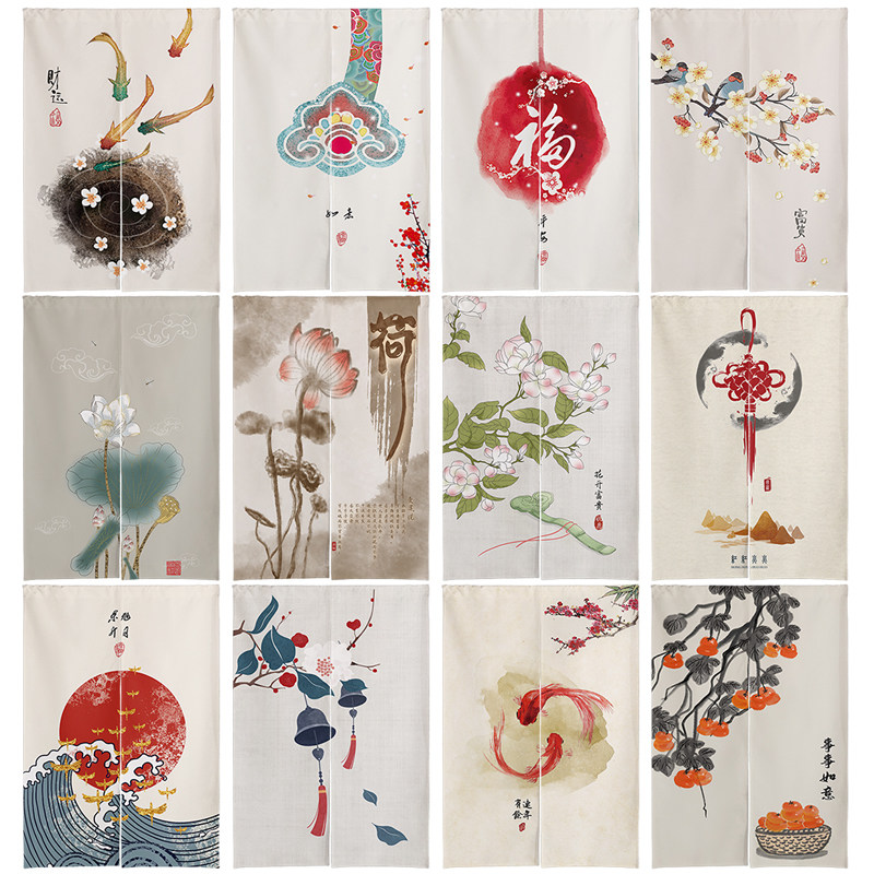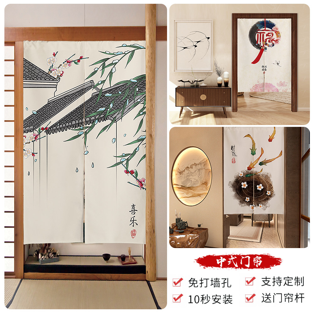 Block curtain room bedroom home with punch kitchen cotton half curtain Chinese windshield cut waterproof curtain