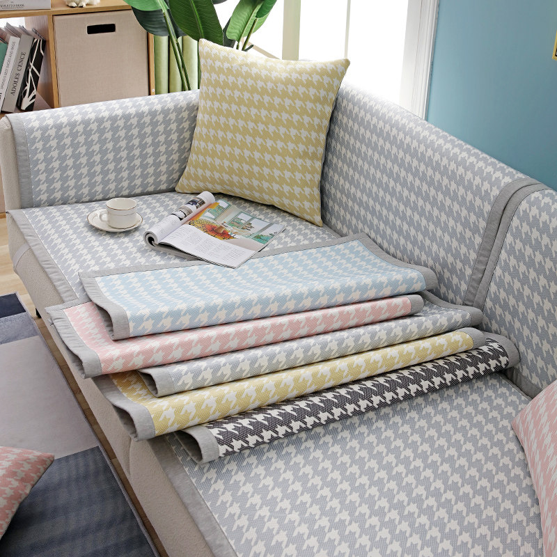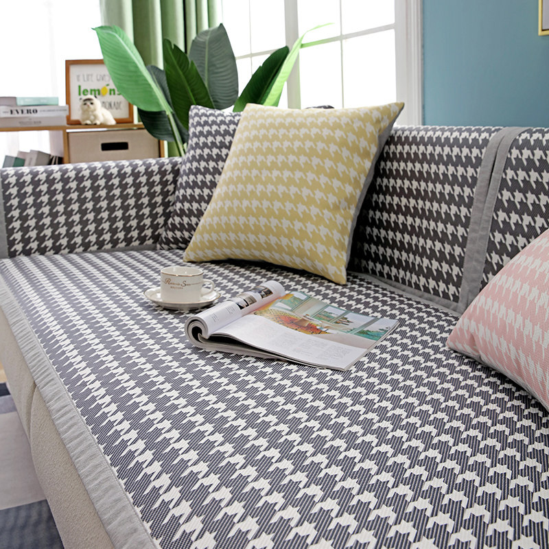 Summer houndstooth sofa cushion cool mat non-slip ice silk rattan seat simple modern Nordic summer sofa cover towel