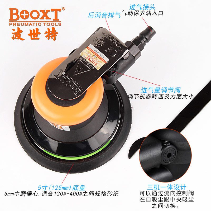 Taiwan BOOXT direct supply BX-288 industrial-grade oil-free pneumatic sandpaper grinding and polishing machine 5 inch durable round
