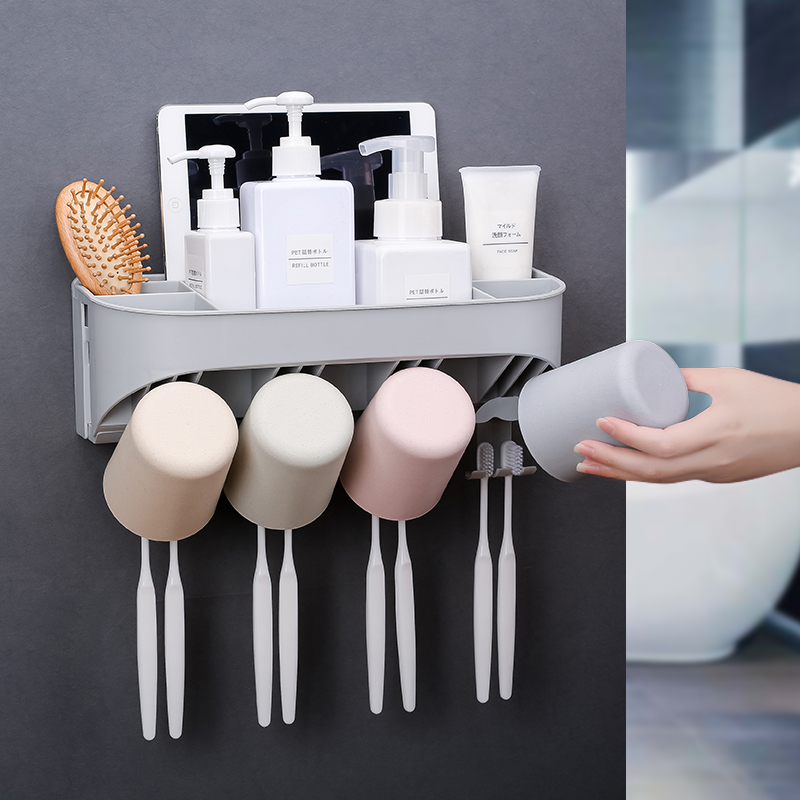 Toothbrush Shelve Makeup Room Toothbrushing Cup Gargling Cup Free-punch multifunction suction wall-mounted tooth-cylinder tooth suit