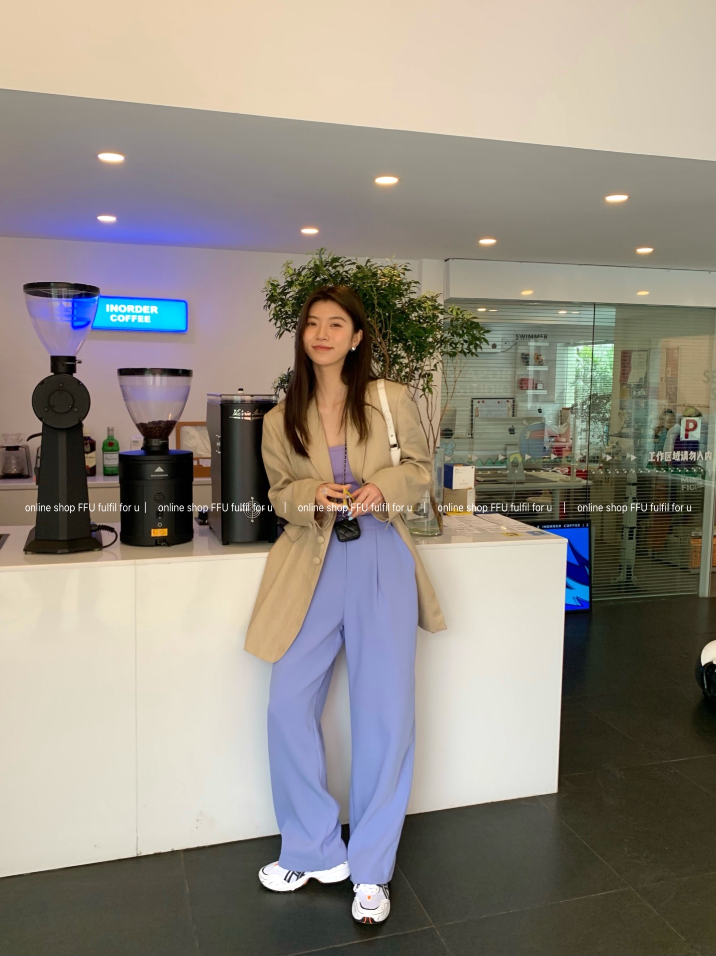 FFU Suit Broadlegged Pants Woman High Waist Pituality 2022 Spring Straight Barrel Spring Autumn Easy Tug Long Pants Tidal QZ