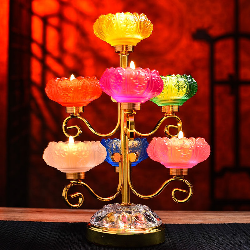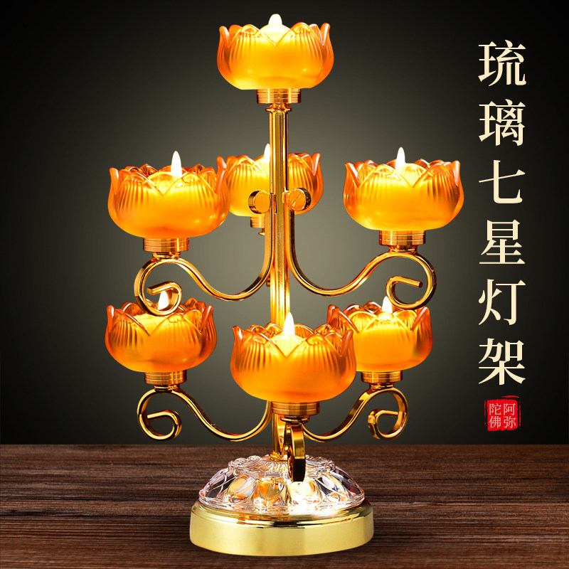 Seven star lamp holder glazed lotus crisp oil lamp for Buddhist lamp holder Home Changming lamp candle holder Base water crystal lamp stand lamp