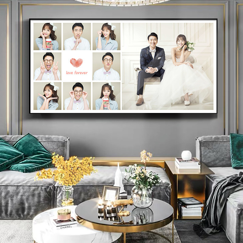 Wedding photo enlargement hanging wall washing photo plus crystal photo frame custom photo studio high-end wedding photo nine palace grid production