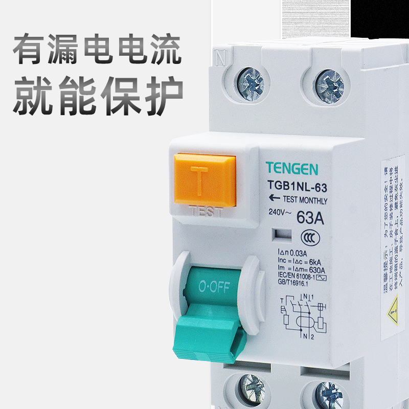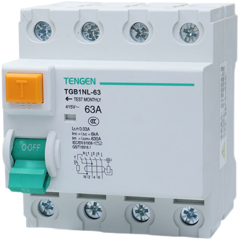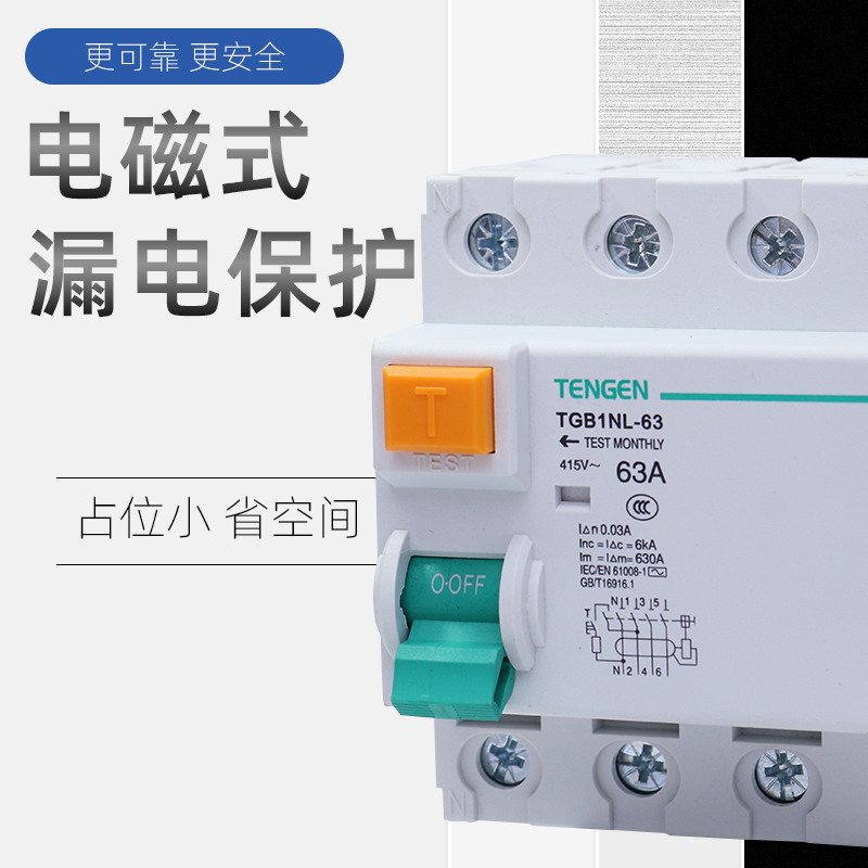 Electromagnetic leakage protector TENGEN Tianzheng Electric TGB1NL-63A 4P three-phase four-wire switch short circuit