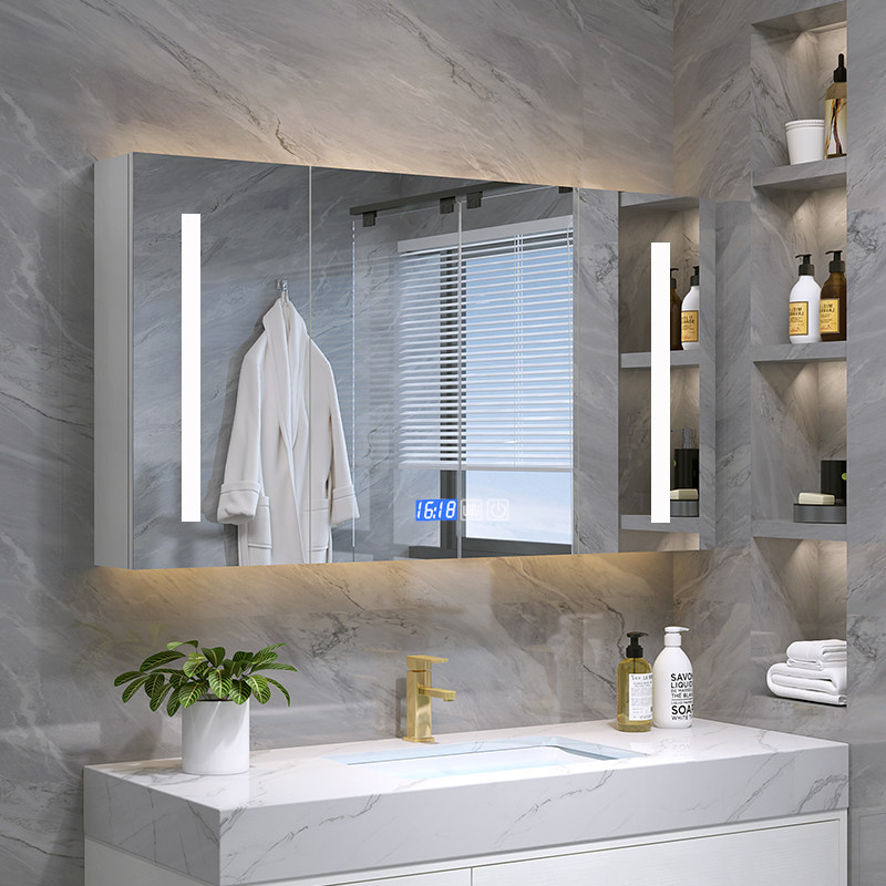 Solid wood intelligent mirror cabinet Powder room storage storage wall-mounted toilet with light mirror bathroom storage simple