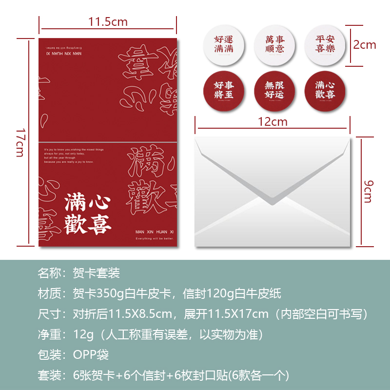 E good things will go to 6 envelope stickers F everything smoothly 6 envelope stickers mixed packages 6 non-repeated containing envelope stickers D good luck full of 6 envelope stickers C unlimited luck 6