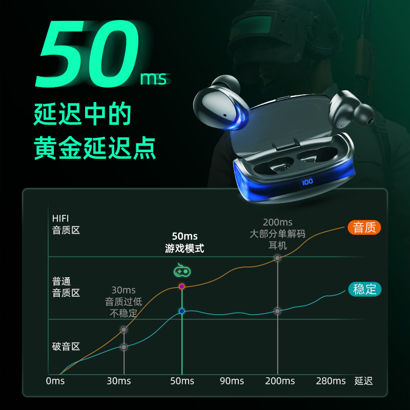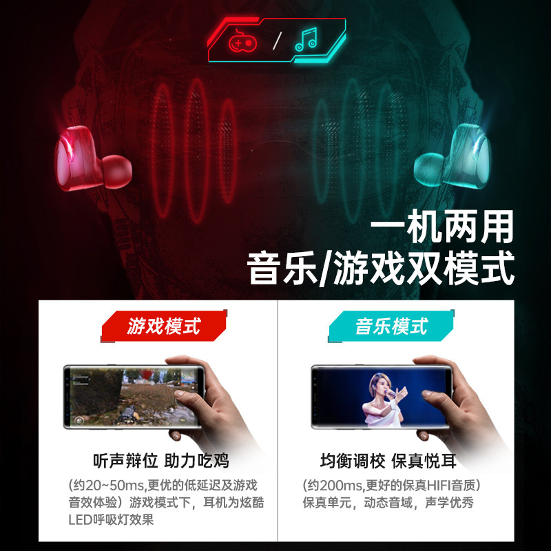 (Game without delay) 2021 new bluetooth headset true wireless binaural in-ear e-sports special eating chicken style peace elite mobile game super long standby for Xiaomi Apple Huawei