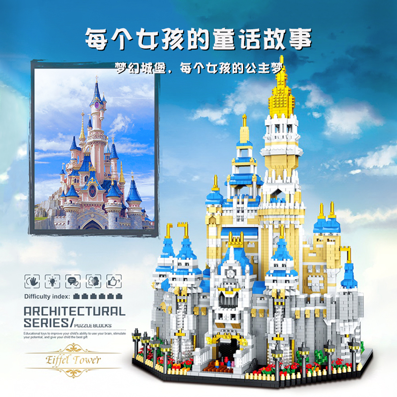 White castle building blocks (give light strings) 3843 grain white castle building blocks (gift box version) (gift string) 3843 Grain Blue Castle Building Blocks (gift box version) (Give a light string) 52
