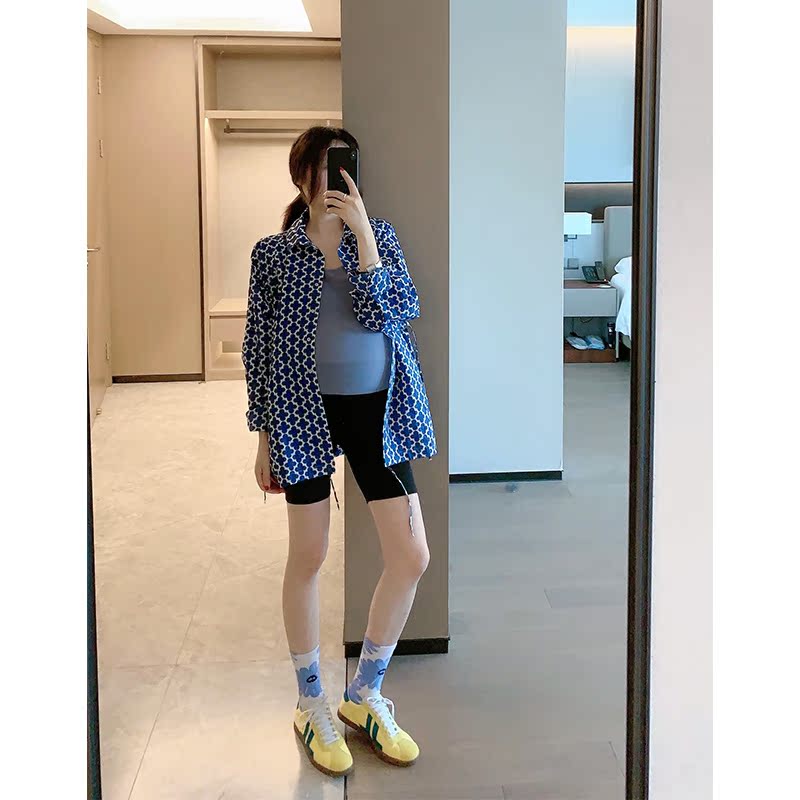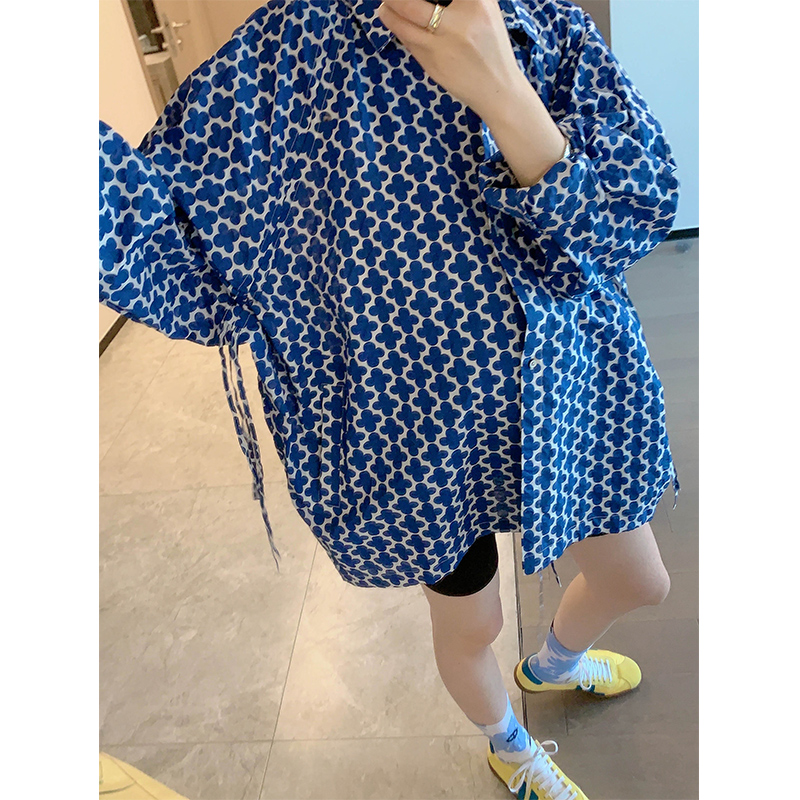 MYL2021 spring and summer new cotton drawstring bat sleeve Western style flower loose lapel shirt top casual cardigan
