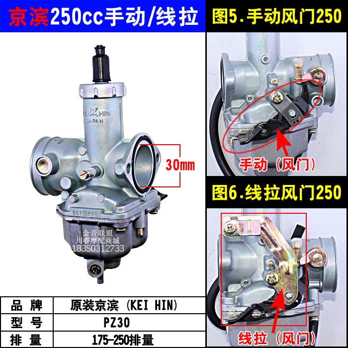 Figure ① Original Keihin 125 manual drawing ② Original Keihin 125 line drawing ③ Original Keihin 150 manual drawing ④ Original Keihin 150 line drawing ⑤ Keihin 175~250 manual drawing ⑥ Jing