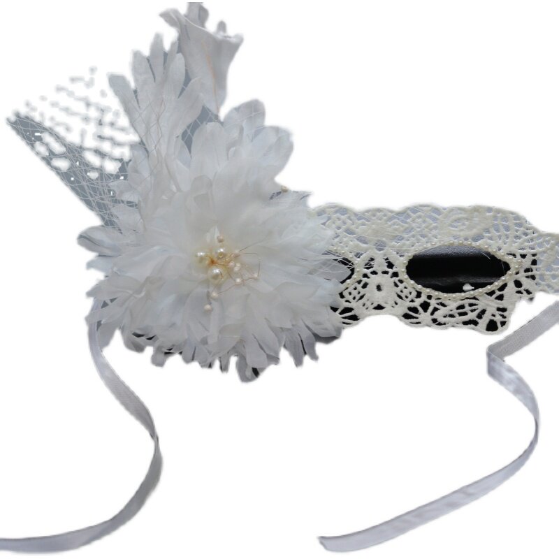 White Black Stream Suwhite 2 White 4 Black Silk Lace Jerky Birthday Deer Corner Black Flowers White Flowers White Rabbit Black Feather Water Drill Mask
