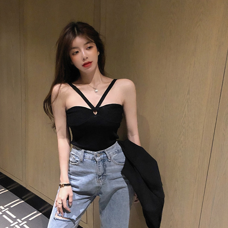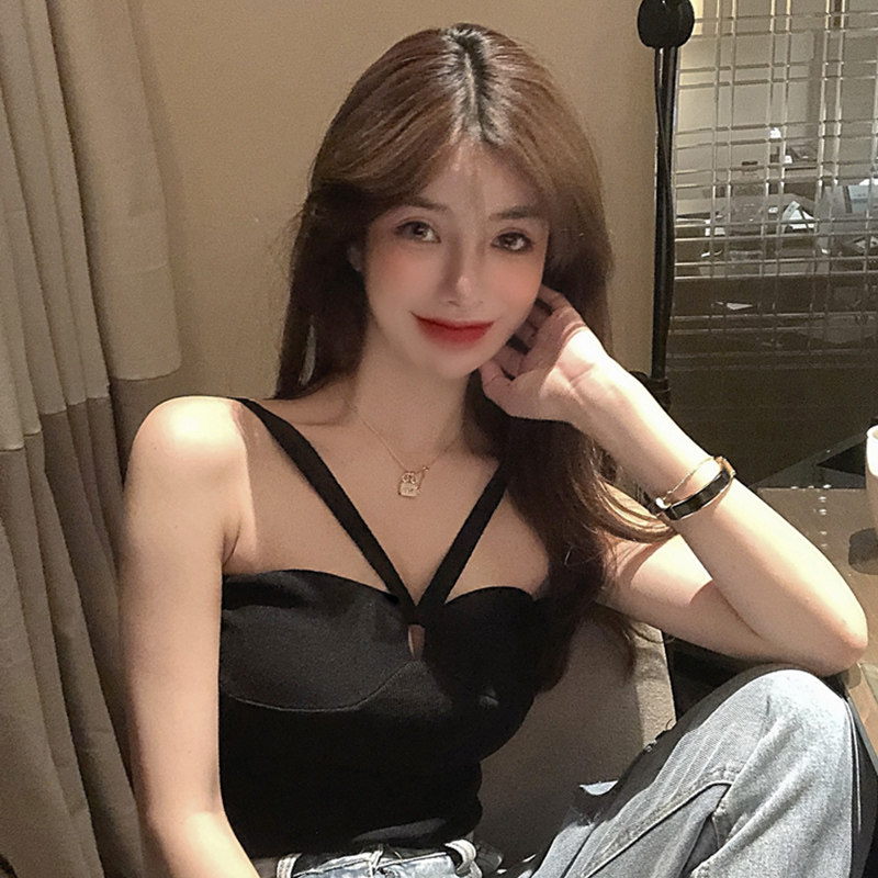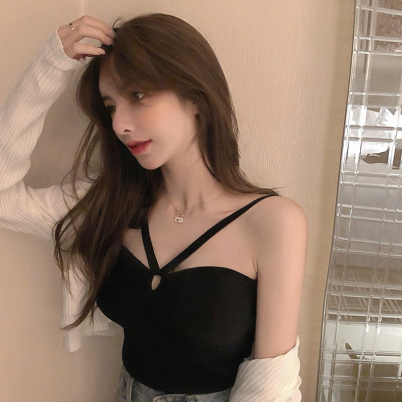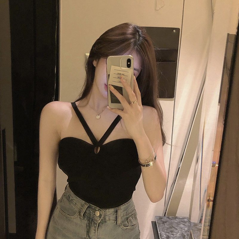 Black beauty back cross halter camisole Female inner wear bandeau sexy hottie wrapped chest bottom top summer