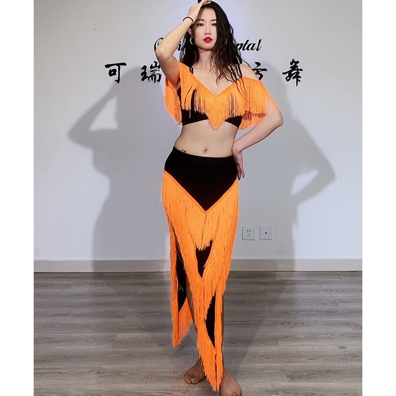 SWEGAL Belly Dance Practice Costume Performance Costume 2022 New Set Heavy Industry Tassel Inspiration Practice Costume Performance Costume