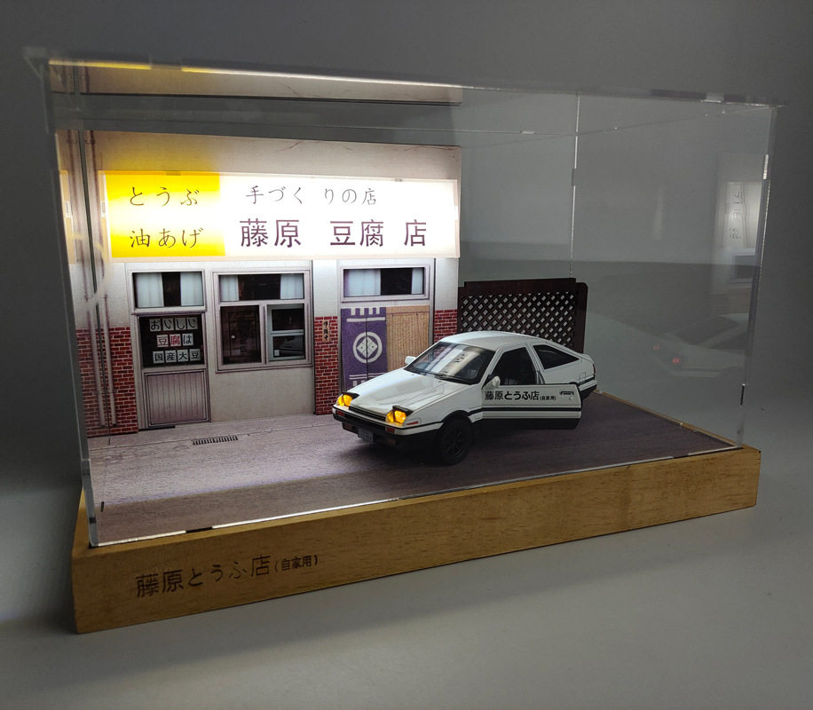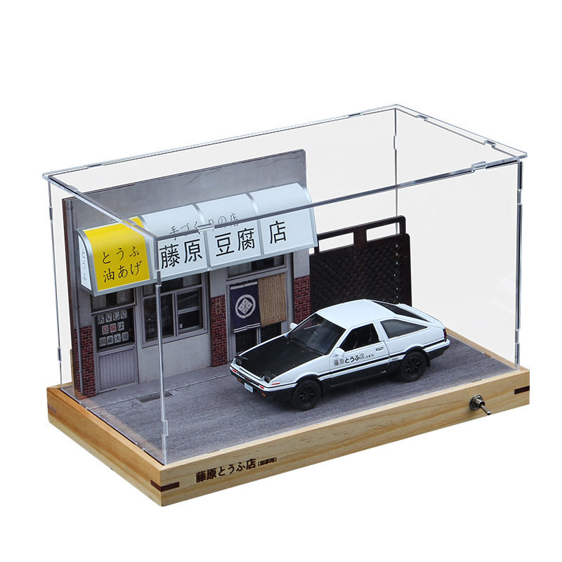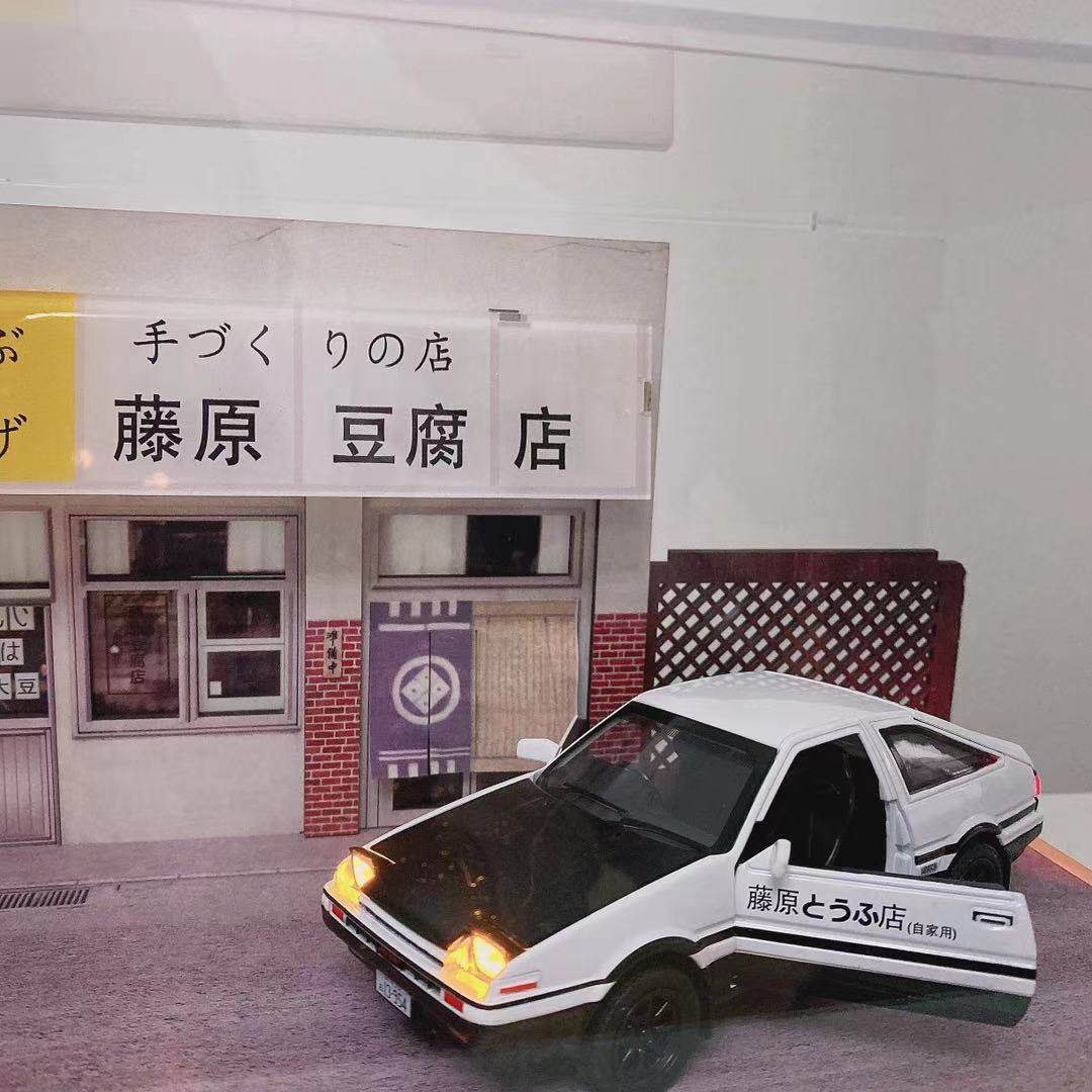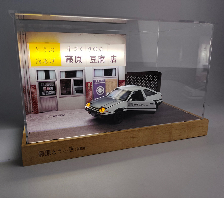 AE86 Black Cover Car Model + Glass Scene Set AE86 White Cover Car Model + Scene Set Glass