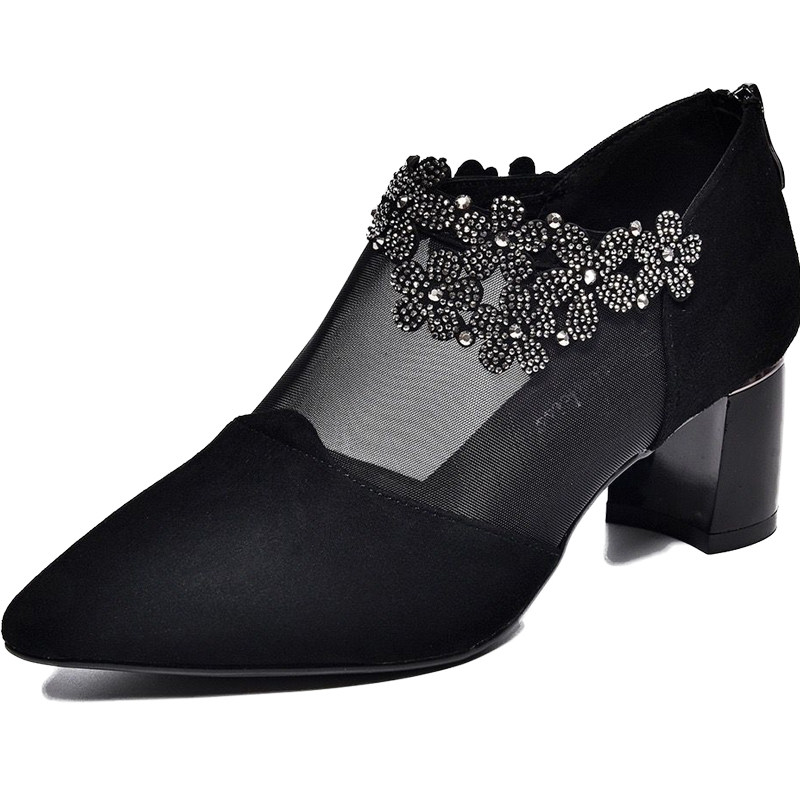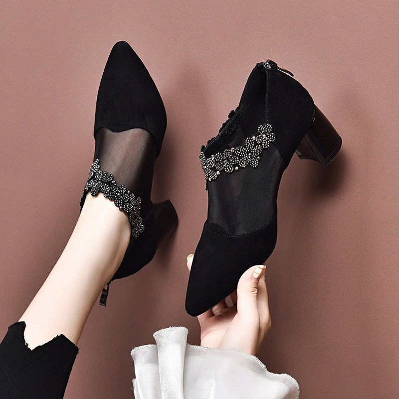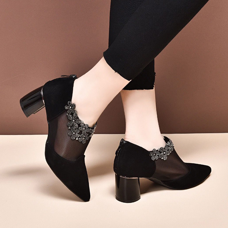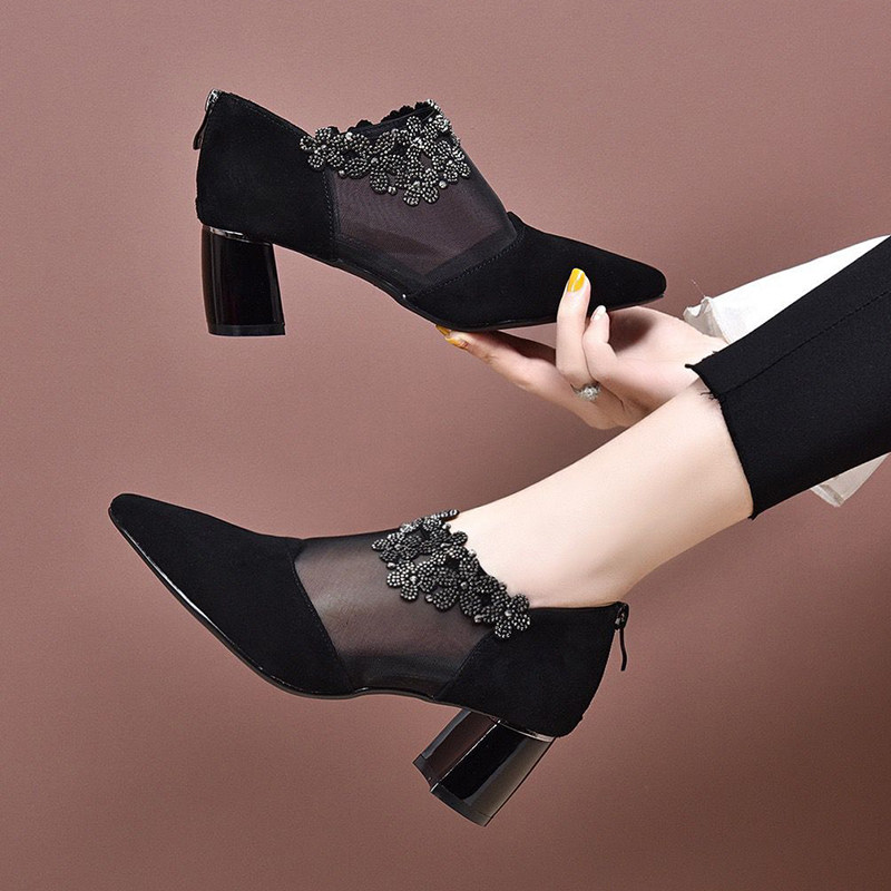 Coarse Heel Mesh Boots Shoes Children 2022 New Hollowed-out Mesh Shoes Pointed Mesh Surface Breathable High Heel Women Shoes Hollowed-out Single Shoes