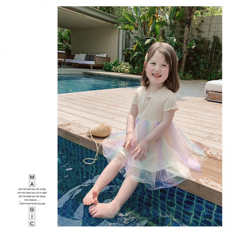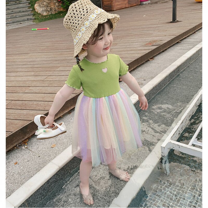 2023 new girls' summer gauze skirt little princess foreign style tutu skirt baby rainbow little girl dress
