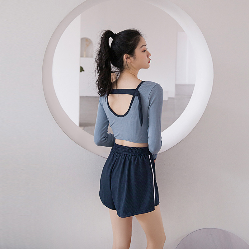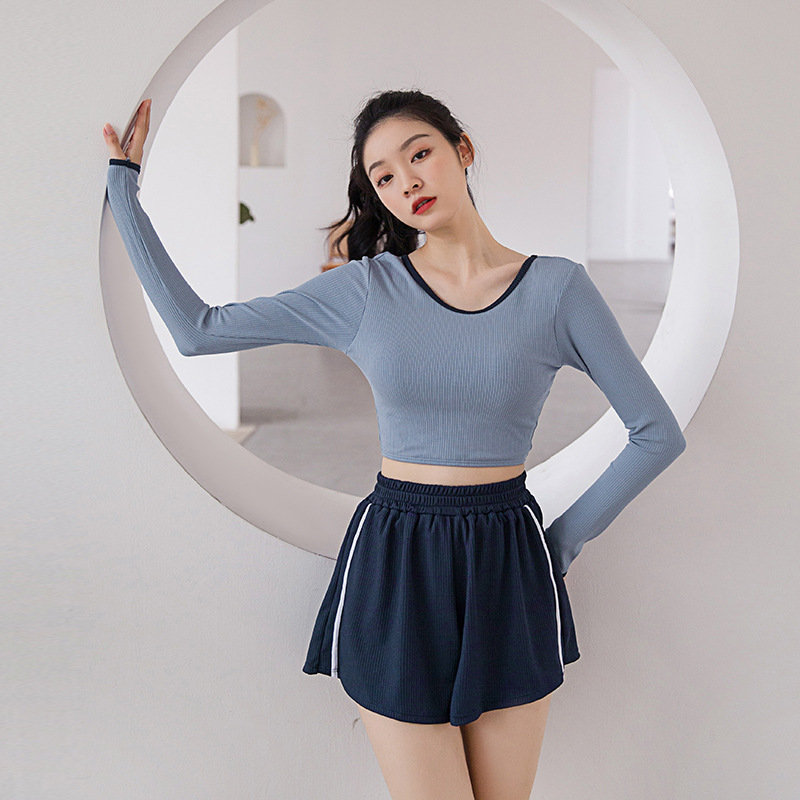 Swimsuit women's summer 2022 new Korean long-sleeved three-piece two-piece slim long-sleeved sunscreen high waist conservative swimsuit
