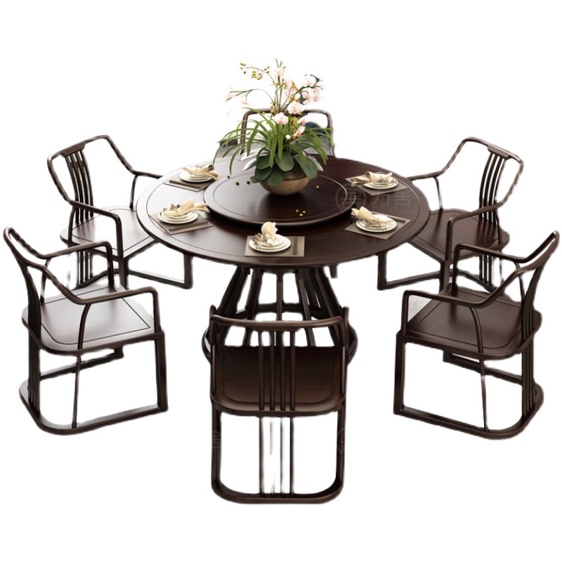 New Chinese-style solid wood dining table and chair combination modern Chinese-style Zen round dining table dining table model room home dining room furniture