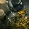 Natural yellow Christmas Acacia dry bouquet with dining room bed and breakfast scene photo decoration Scented candle decoration