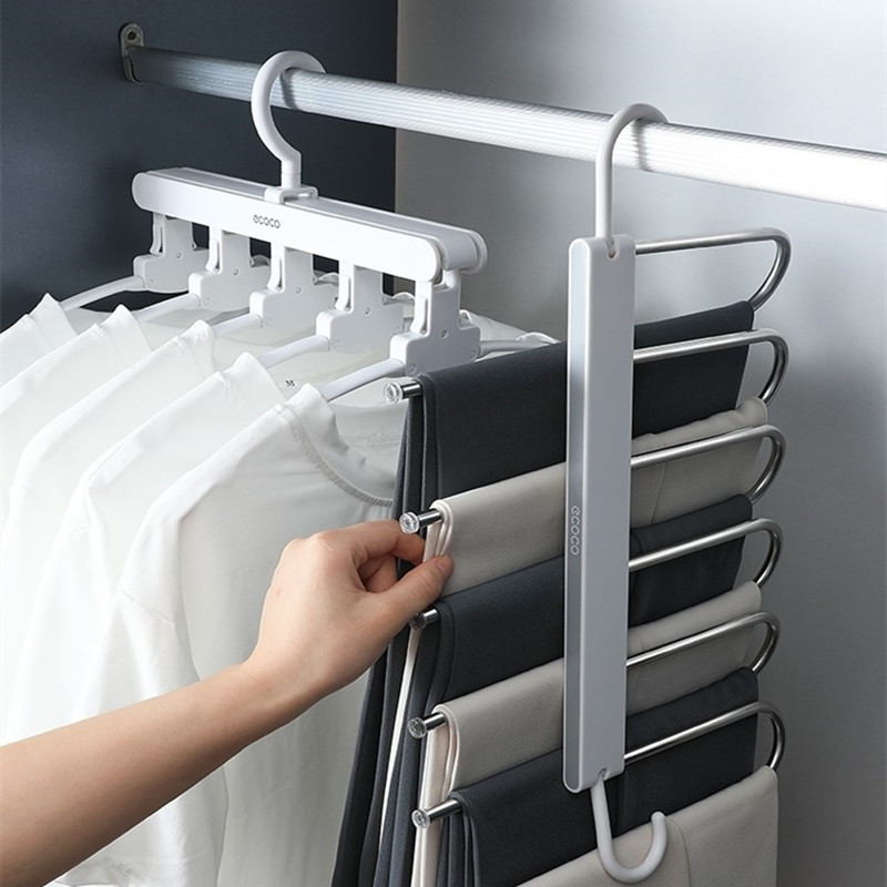 Folding trousers rack telescopic multi-functional multi-layer trousers hanger household magic trousers clip wardrobe storage artifact trousers hanger