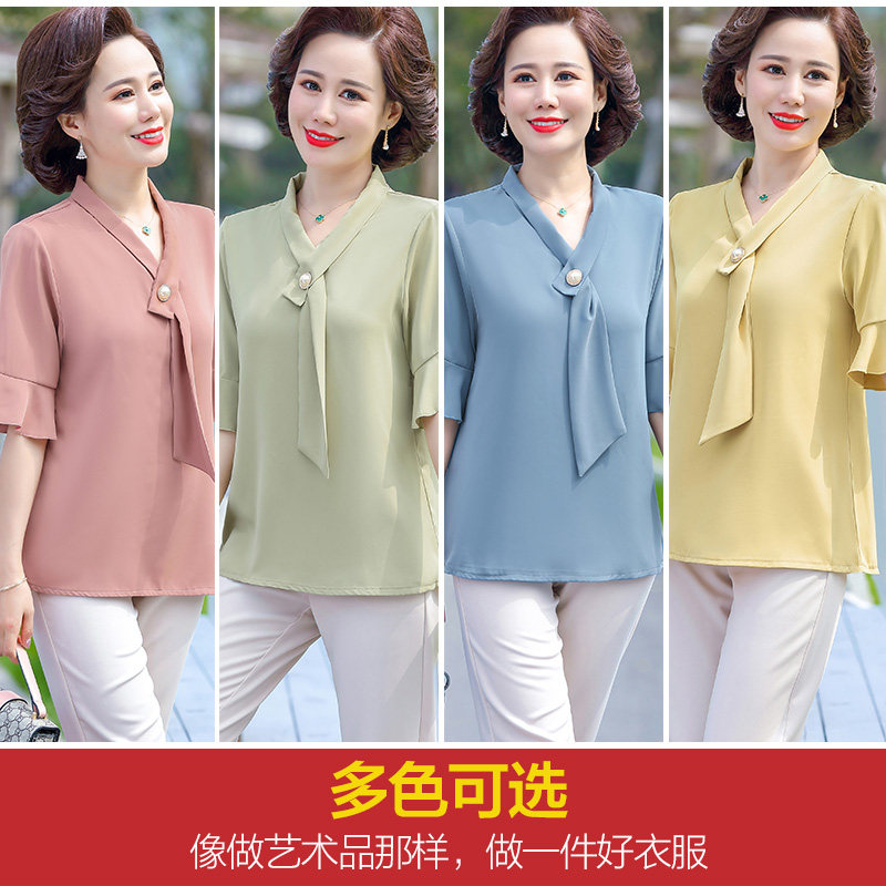 Middle - aged women wear snow - spinning T - shirt middle - aged mother loathed large size 2022 new decreased age - pie summer dress