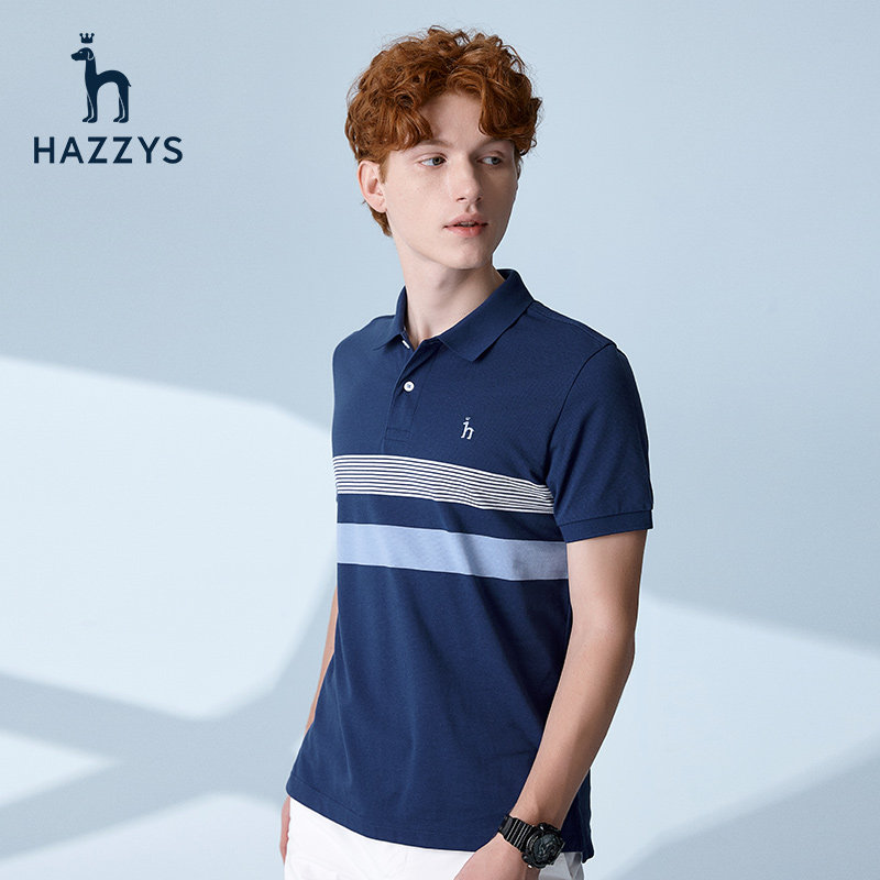 Hazzys Hagis Official Summer New Pint Men's Striped Short Sleeve Flap Polo Shirt Male Business Casual Short Sleeve