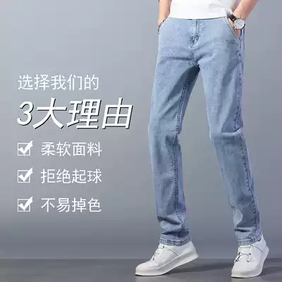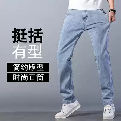 Autumn and winter thick jeans men's straight tube loose elastic Tide brand men's wild 2021 Winter casual long pants men