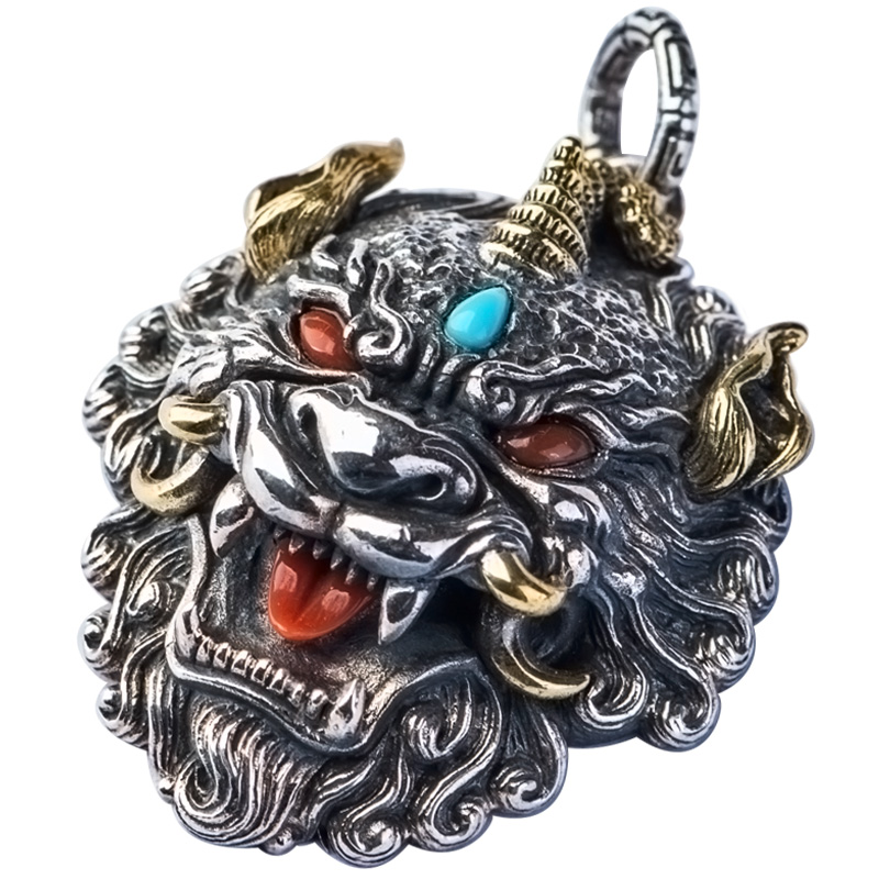 Fulu Leopard Leopard Pure Silver Pendant Warehouse Ji Handmade Property Beast Necklace Men and women Pendant Retro Fashion Hanging Accessories