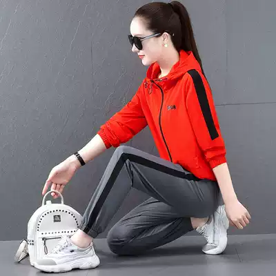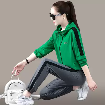 Light luxury brand sports suit women autumn 2021 New hooded foreign style casual quick-drying running suit two-piece set