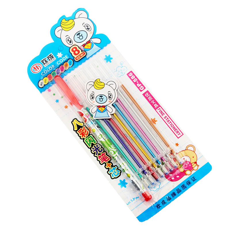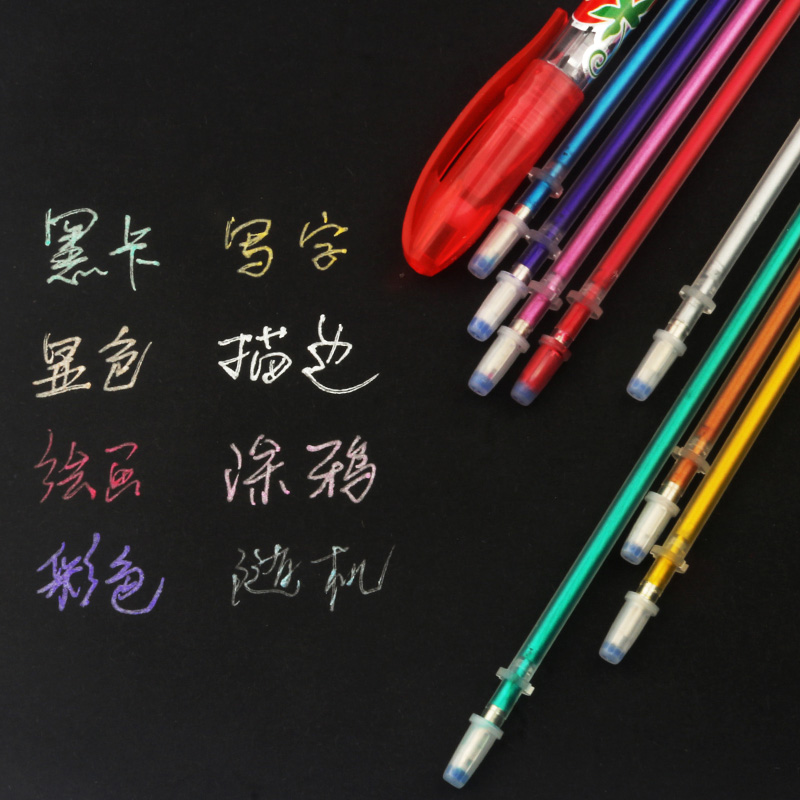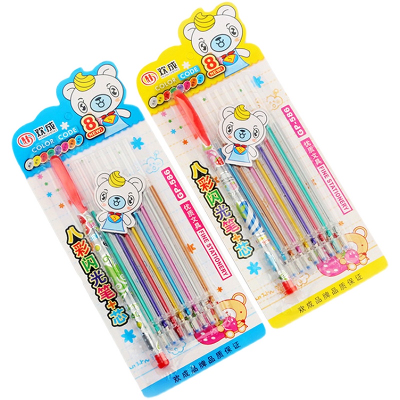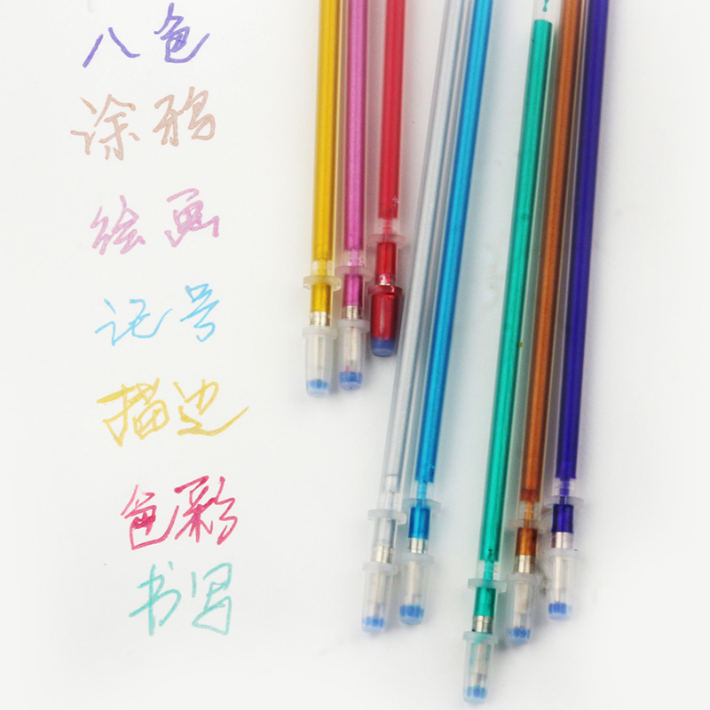 Eight-color flash pen DIY comic book hand ledger diary metal pen with 8-color pen suction card suit 8 refill pens