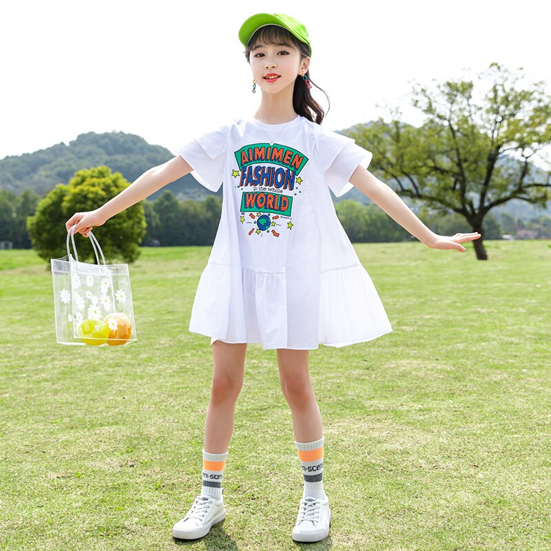Girl's dress Xia dress foreign dress 2022 The new Korean version of the big children's children suit the summer net red girl's dress