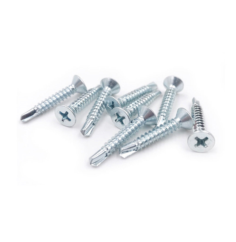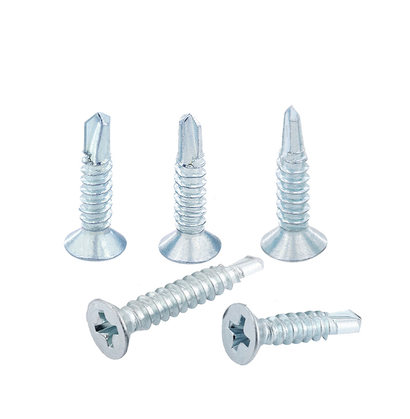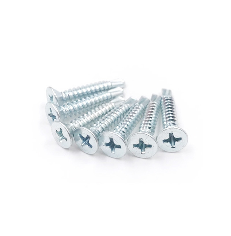 M4 2M4 8 blue and white zinc flat head cross iron screw drill tail self-tapping screw Self-drilling countersunk head dovetail nail