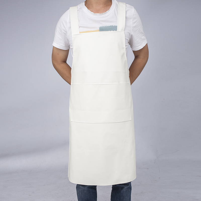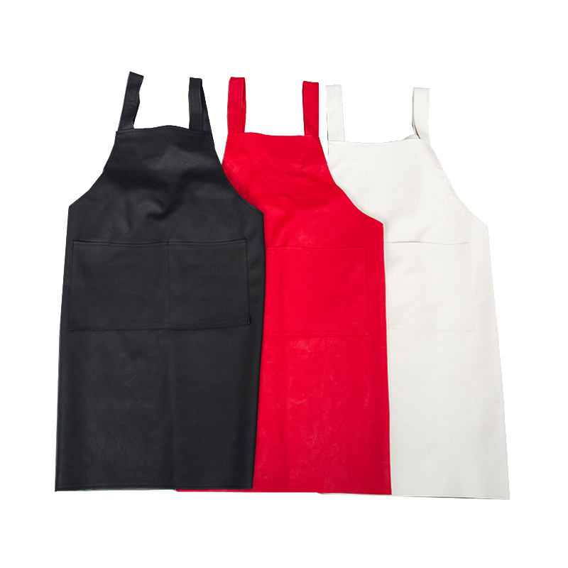 Leather PU waterproof oil-proof acid-resistant sleeveless men's and women's work clothes Leather apron flat pocket kitchen cover