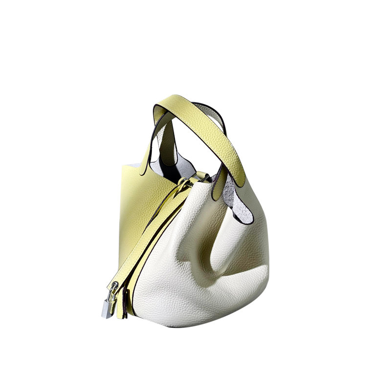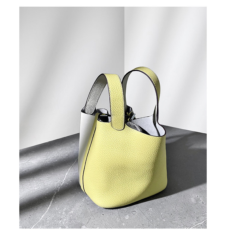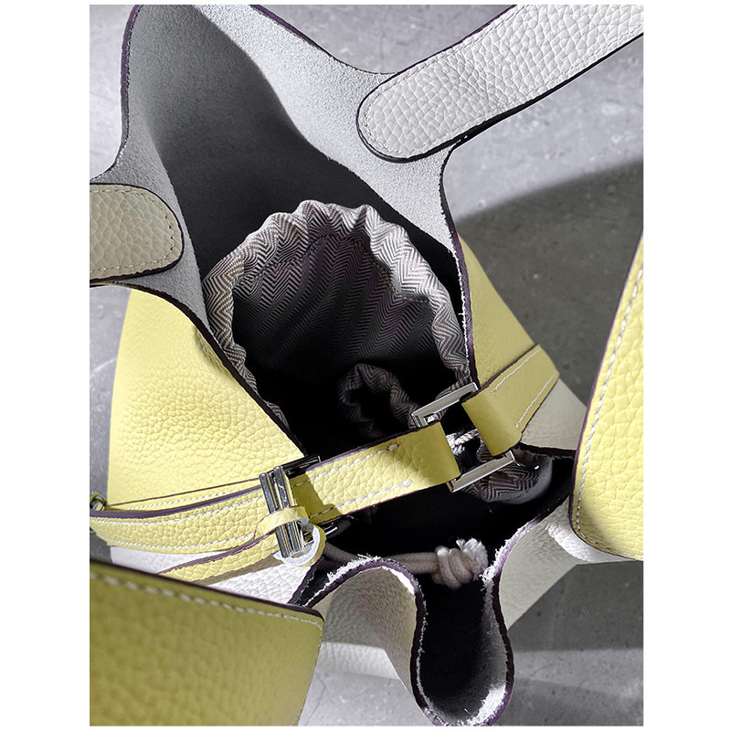 (UK AJ AOIRJ) NICHE GENUINE LEATHER BASKET KIDS BAG CONTRAST COLOR SOFT LEATHER BUCKET BAG BAG HANDBAG WOMAN