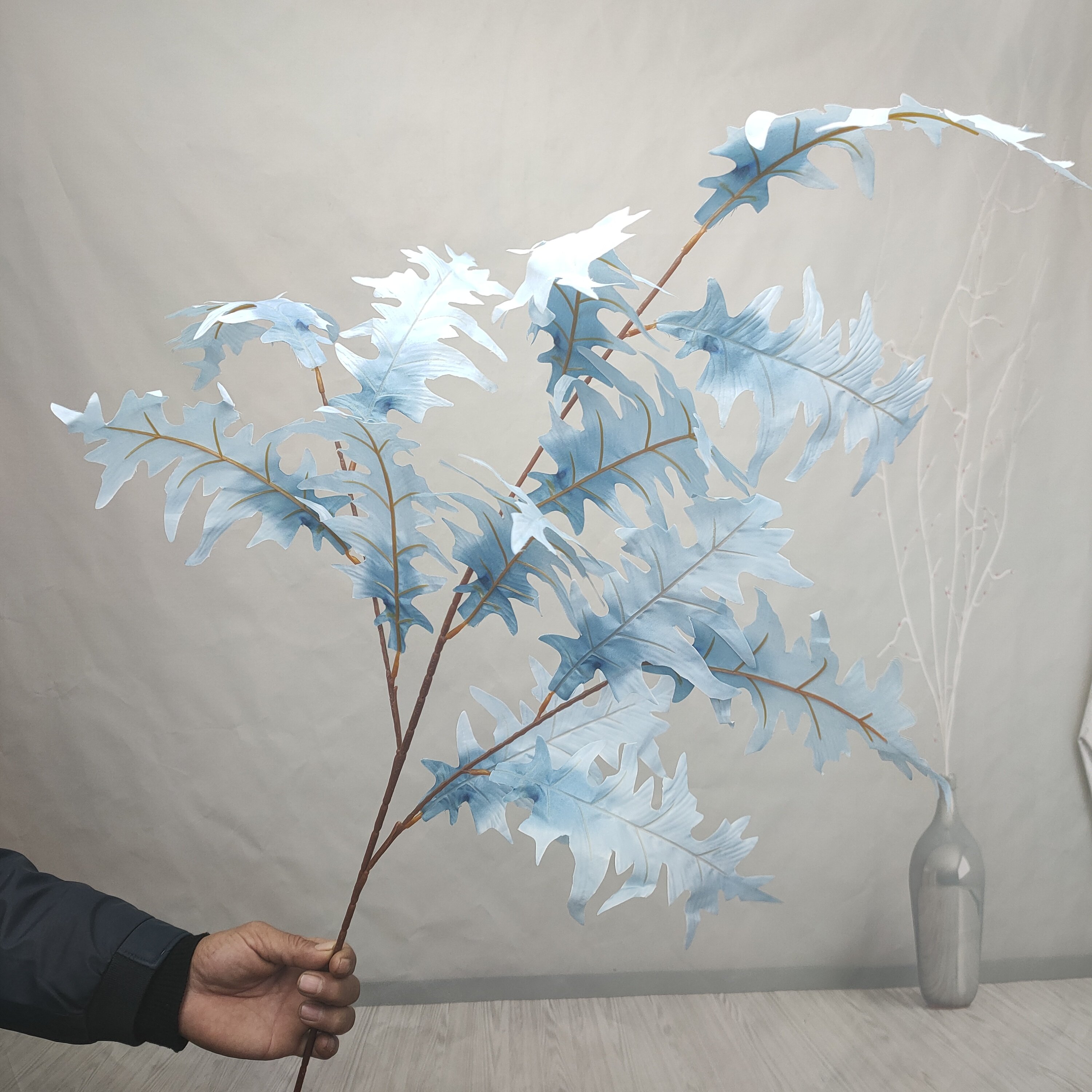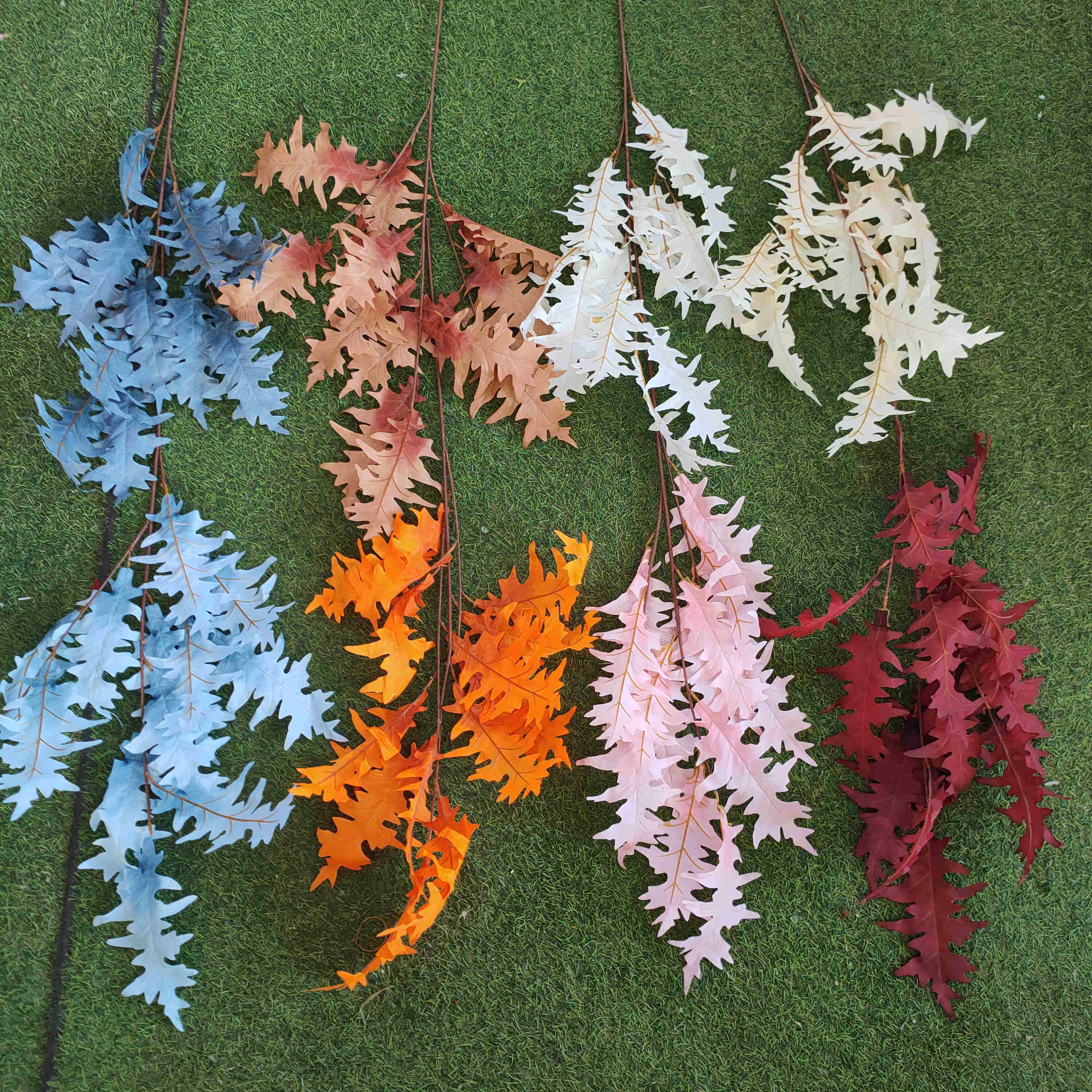 Manufacturer direct sales high branch coral leaf emulation flower serrated foliage fake flower autumn color series wedding celebration floral flower arrangement pick up high suspended ceiling