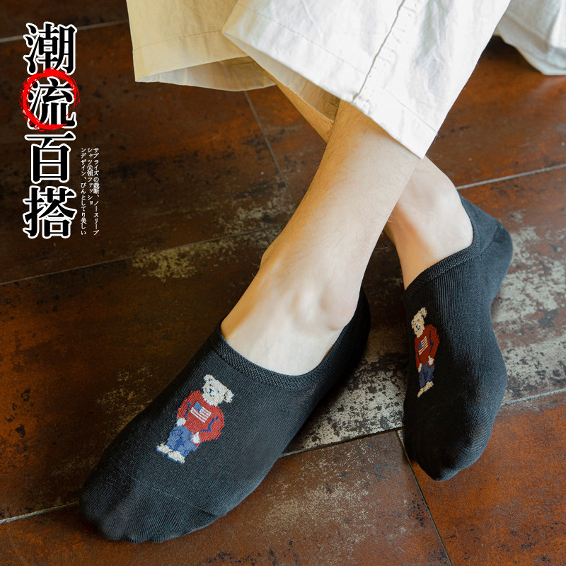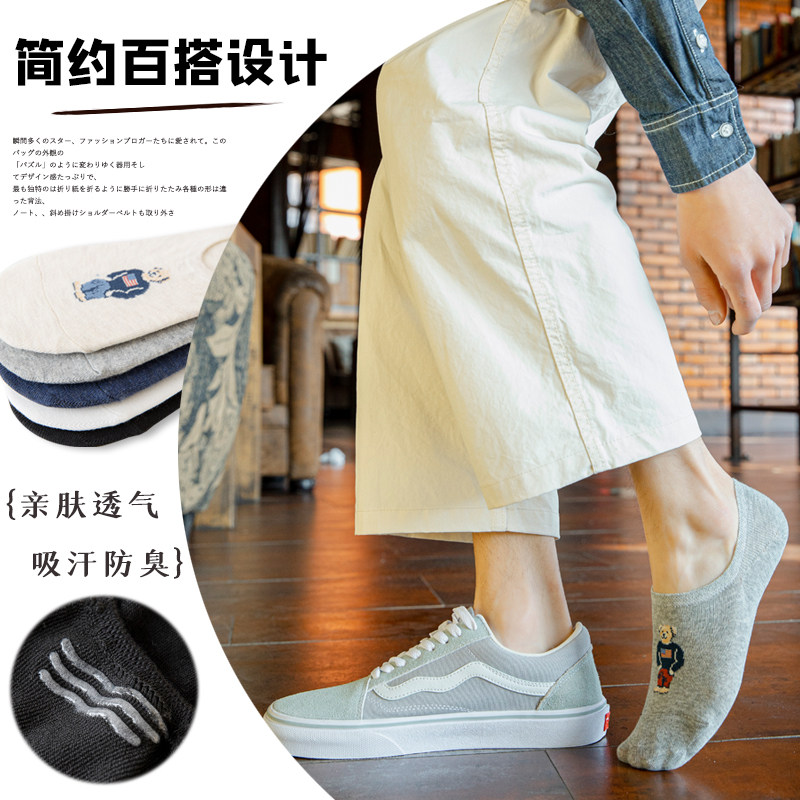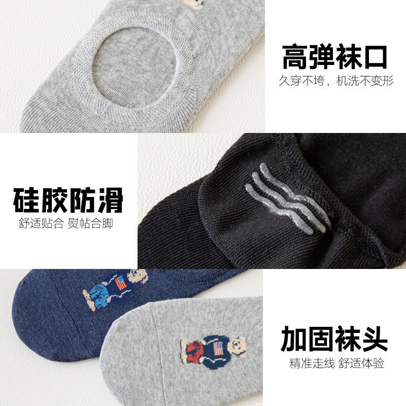 Socks men boat socks summer thin cotton bottom socks spring and autumn sweat-absorbing anti-odor invisible socks silicone non-slip low top