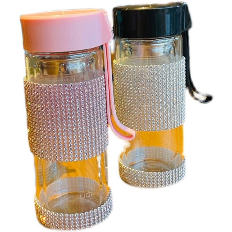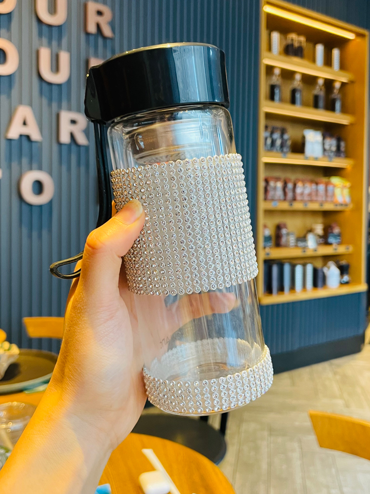 Cup children cute teenage girl high face value glass cup portable minimalist mesh red water drill ins surge with hand transparent water glass