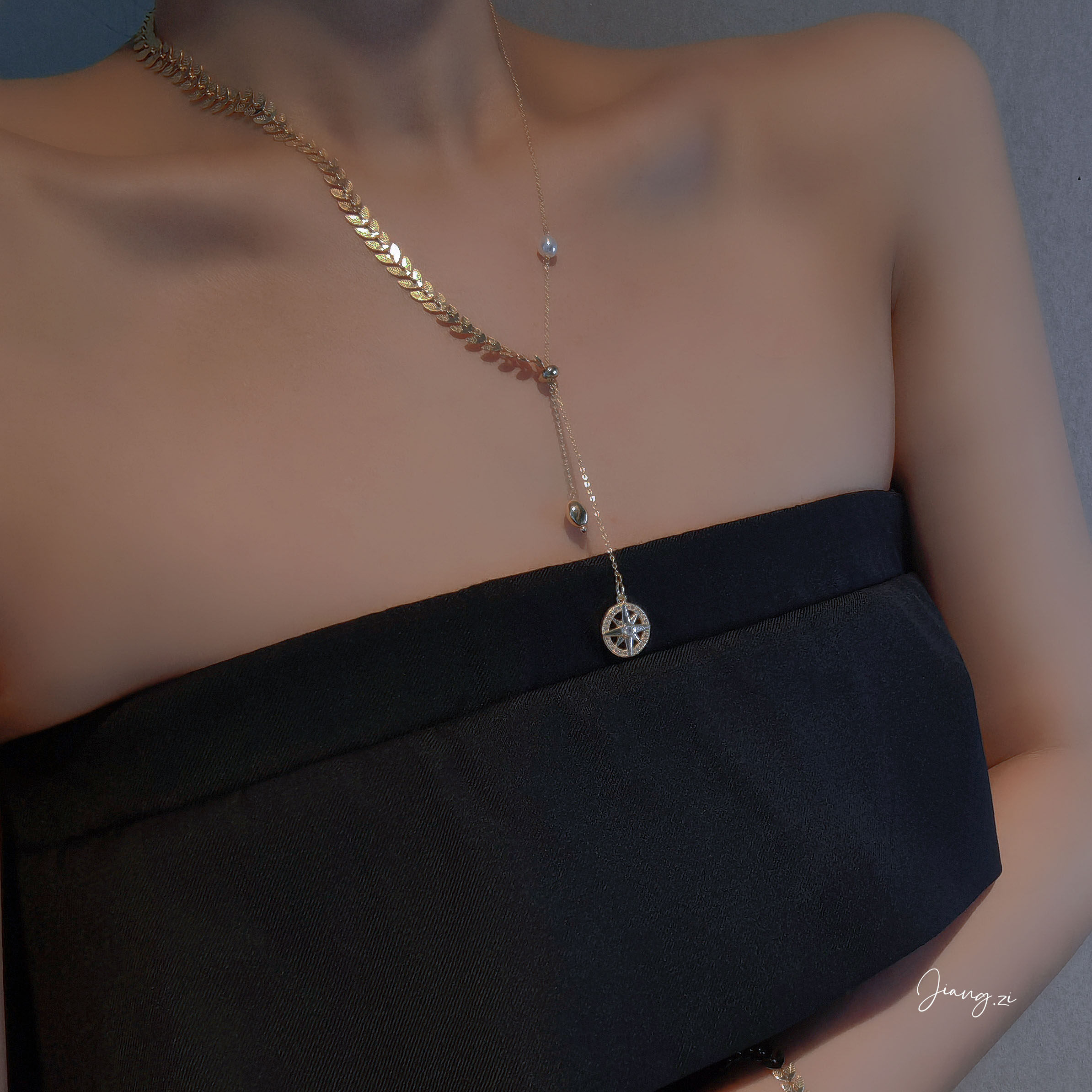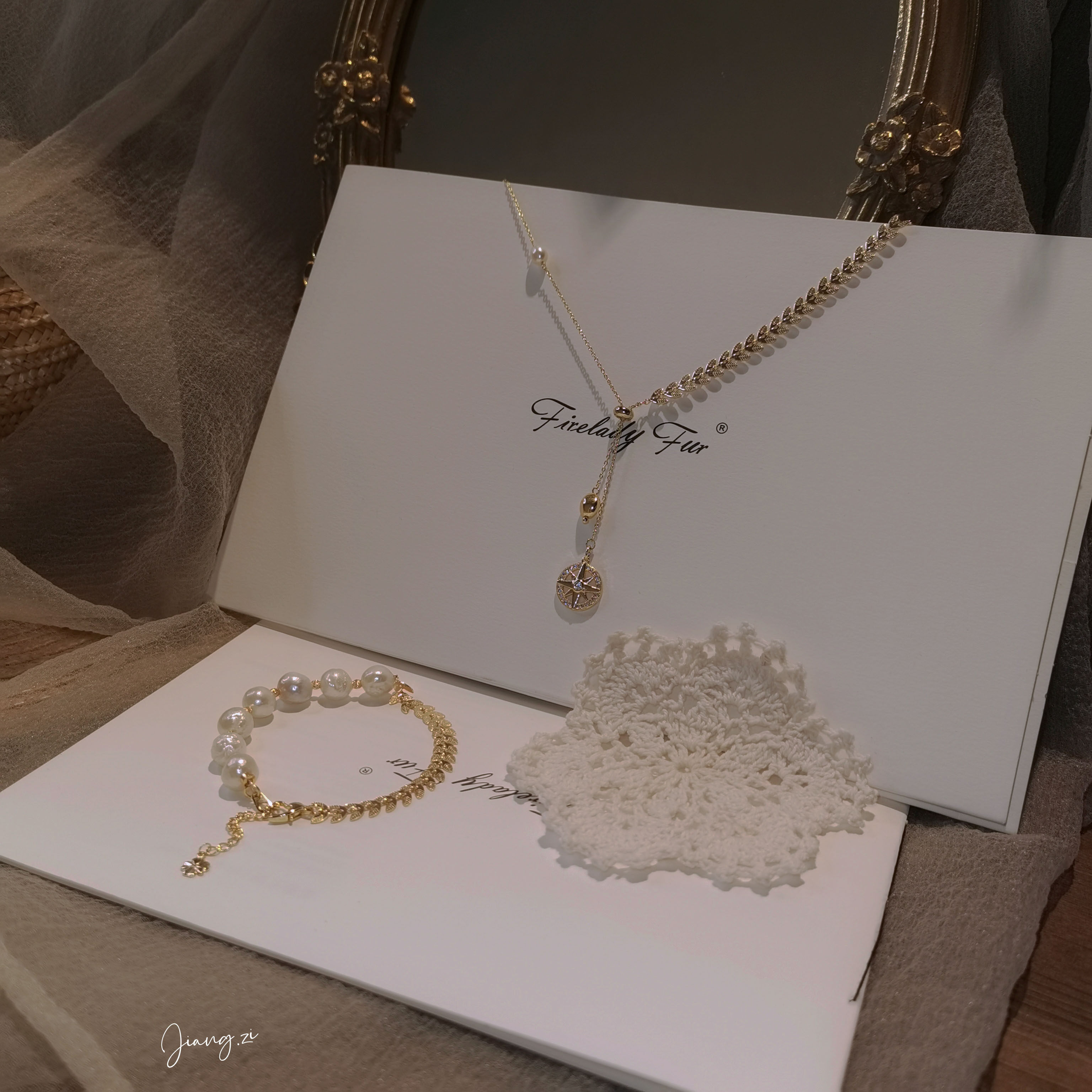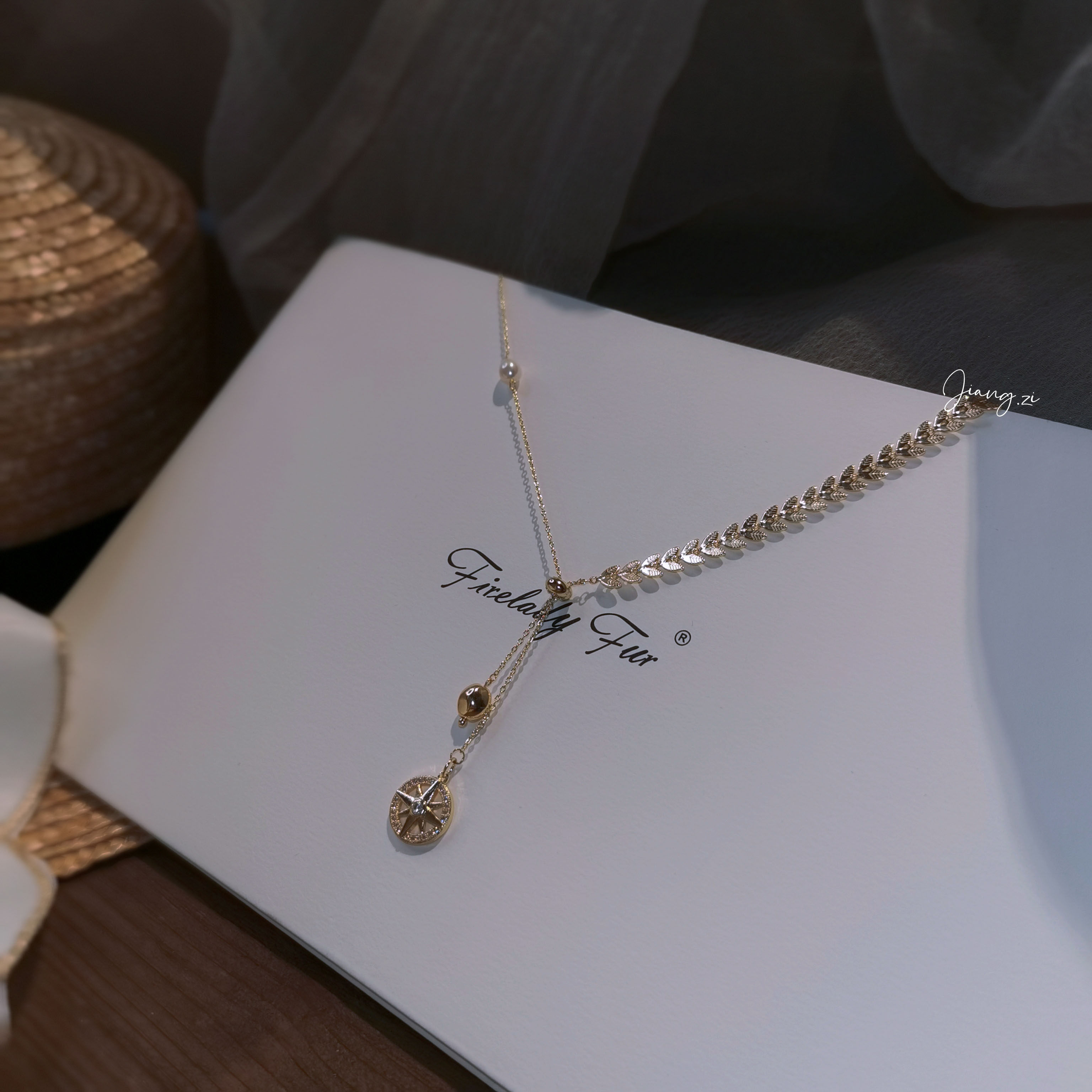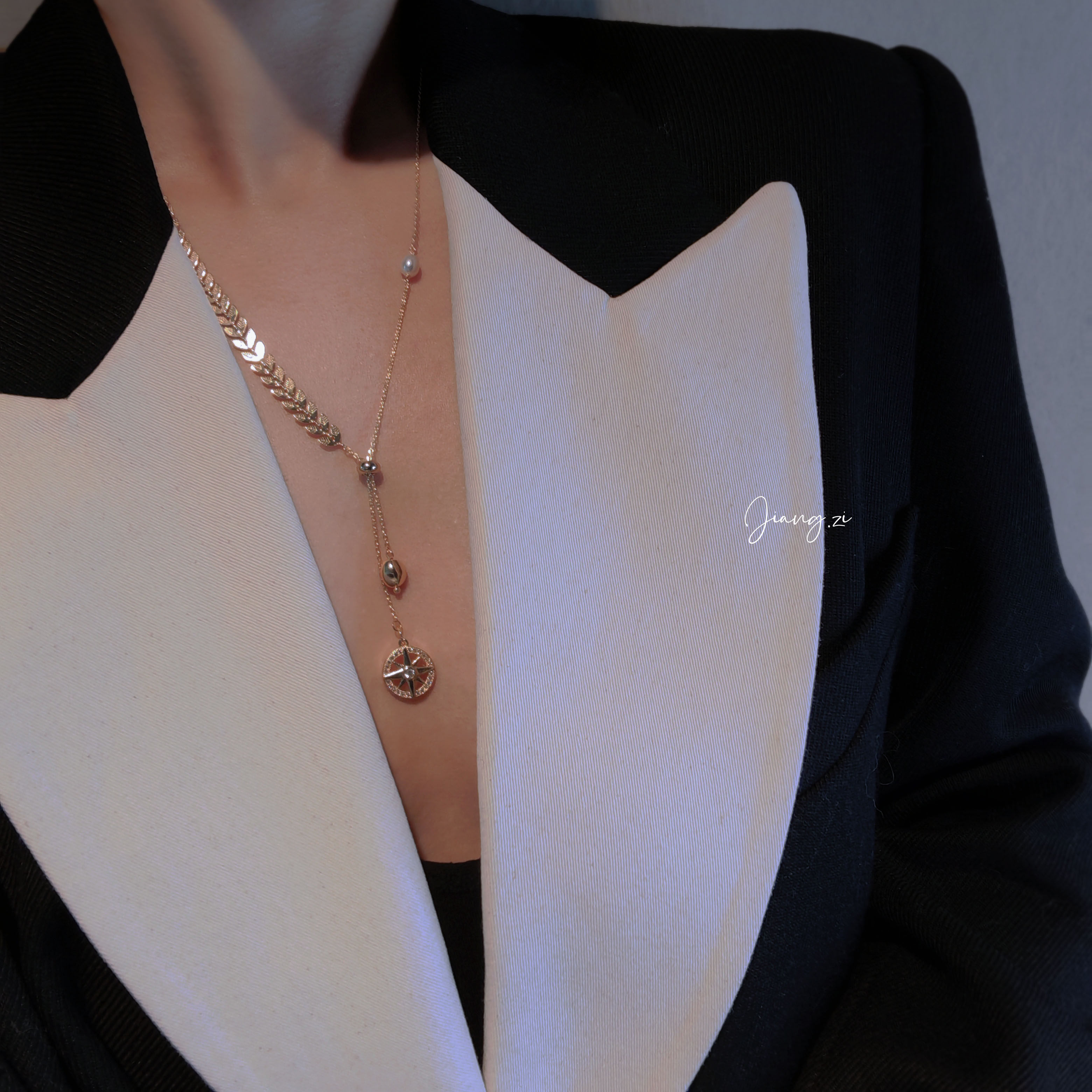 Designer LIKE * Senior gentle 14K BAG GOLD DEEP V NATURAL PEARL ADJUSTABLE NECKLACE LIGHT LAVISH-Taobao