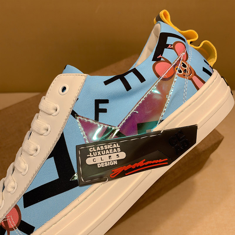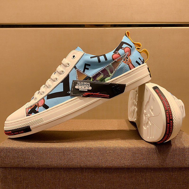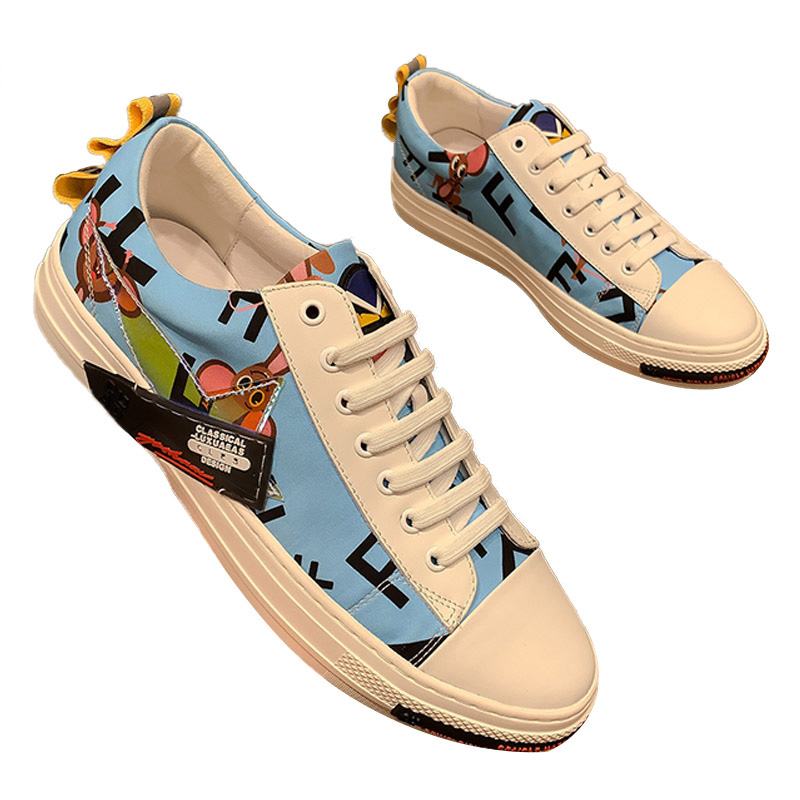 European Station New Little Monster Men's Shoes Genuine Leather Print Youth Trendy Brand Casual Fashion Spring Breathable Lace-Up Sneakers