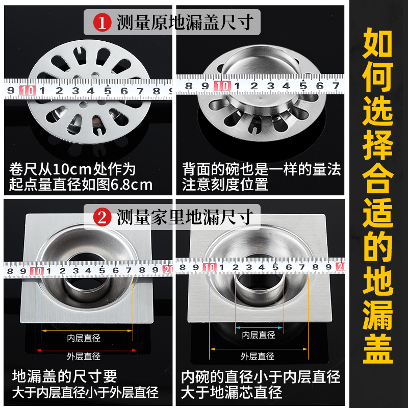 304 stainless steel floor drain cover Round thickened cover sheet Bathroom toilet sewer Anti-bug toilet filtration