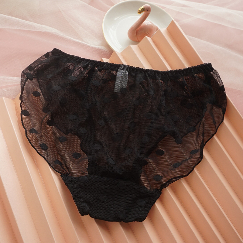 Japanese sweet sexy lace black cotton crotch panties black silk low waist hollow girls briefs transparent mesh
